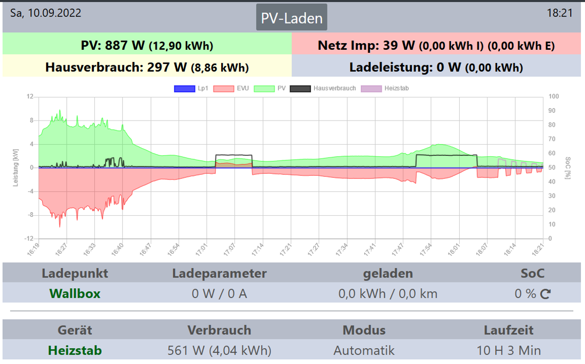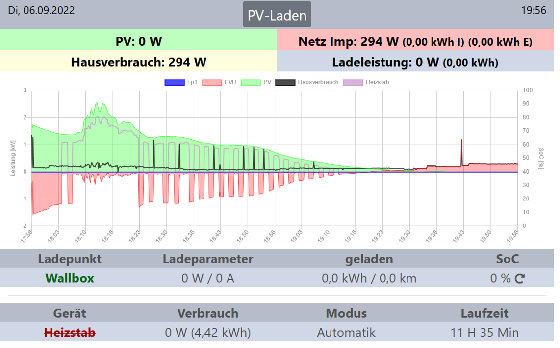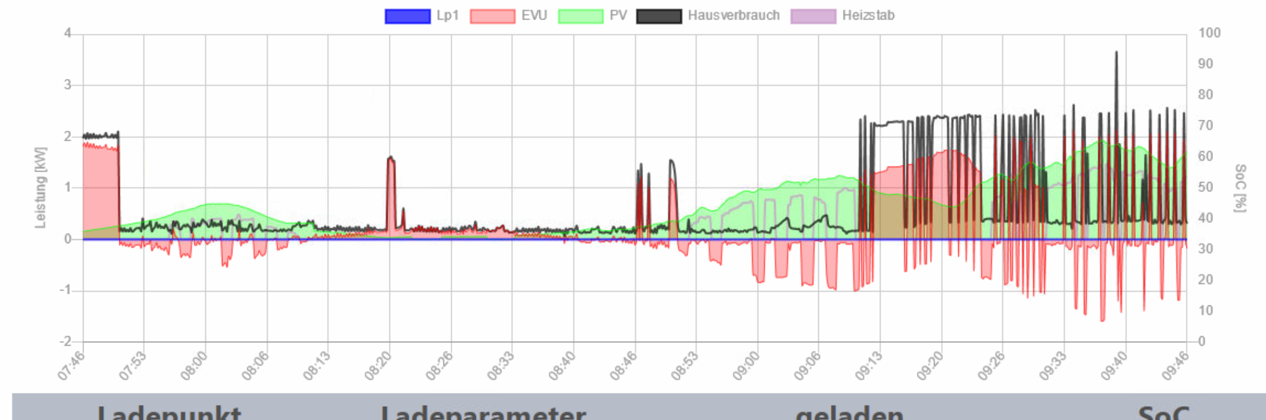 Auch bei heftigen Leistungsschwankungen durch einen Elektroherd bei welchem 2 Platten + Rohr in Betrieb ist funktioniert nun die Regelung smooth.