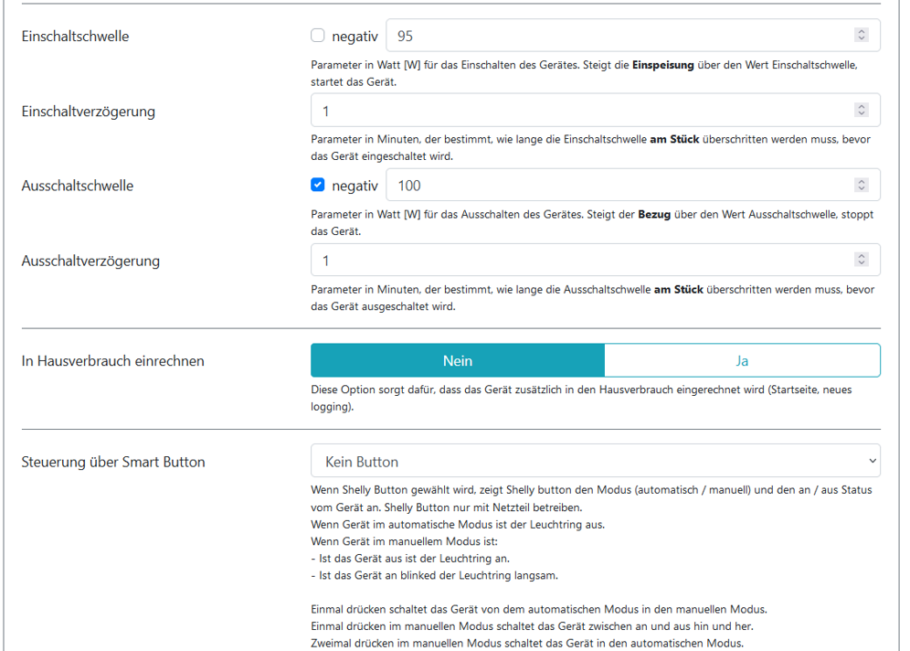 Also eigentlich bei 100W Überschuss wird ausgeschaltet.