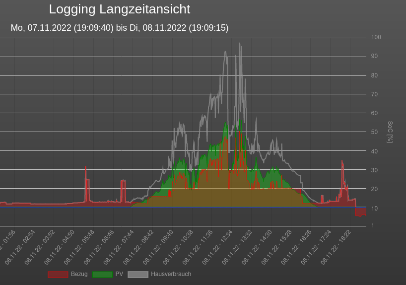 Bitte unter "Einstellungen -> System -> Debugging" das Loglevel auf 2 stellen und unter "Status" nach unten scrollen und vom Debug-Log einen Ausschnitt kopieren, der mit "**** Regulation loop start ****" beginnt und endet (ca. 10 Sekunden) kopieren und hier reinstellen (unter Verwendung von [code][/code] -Tags)
