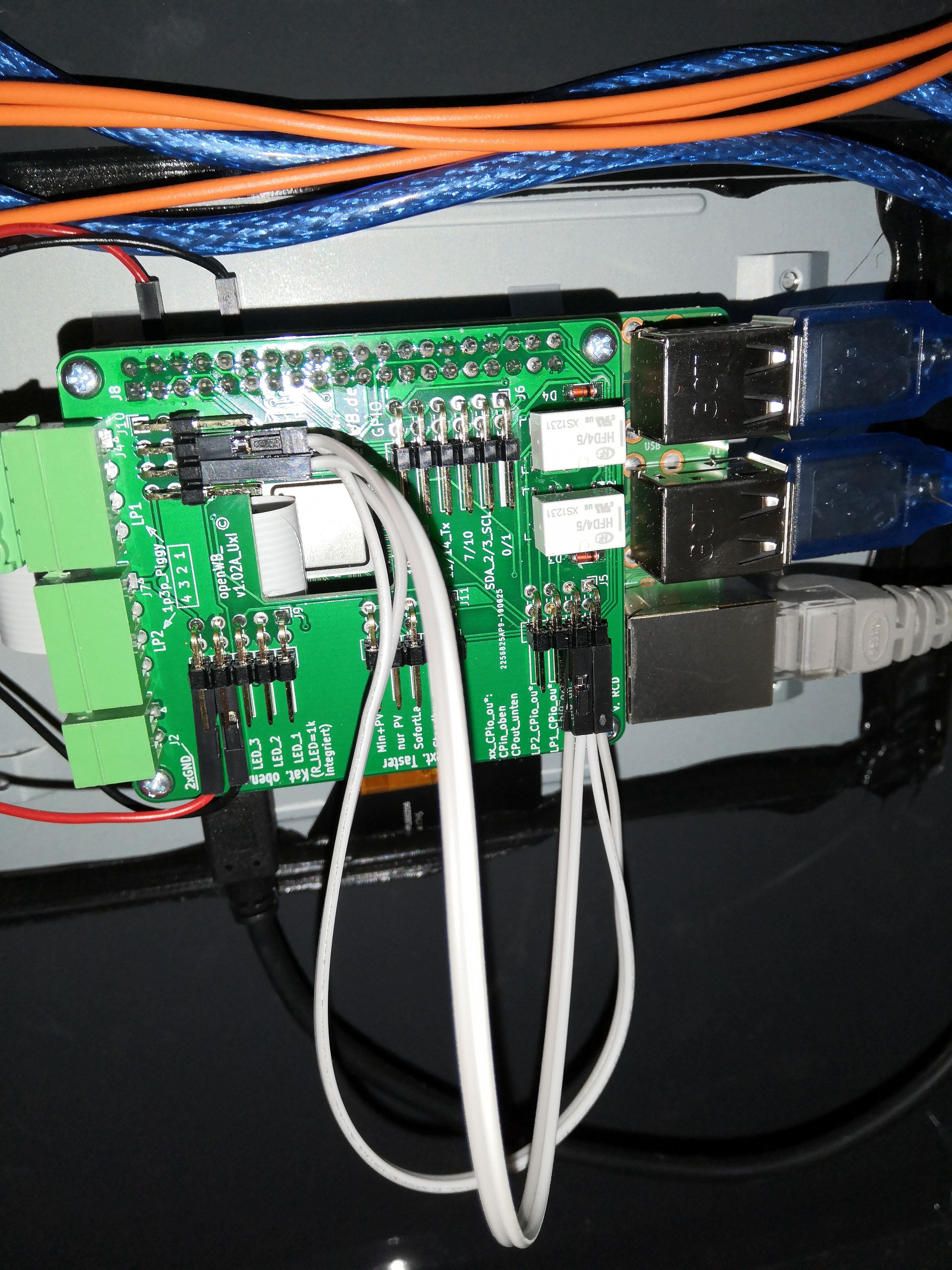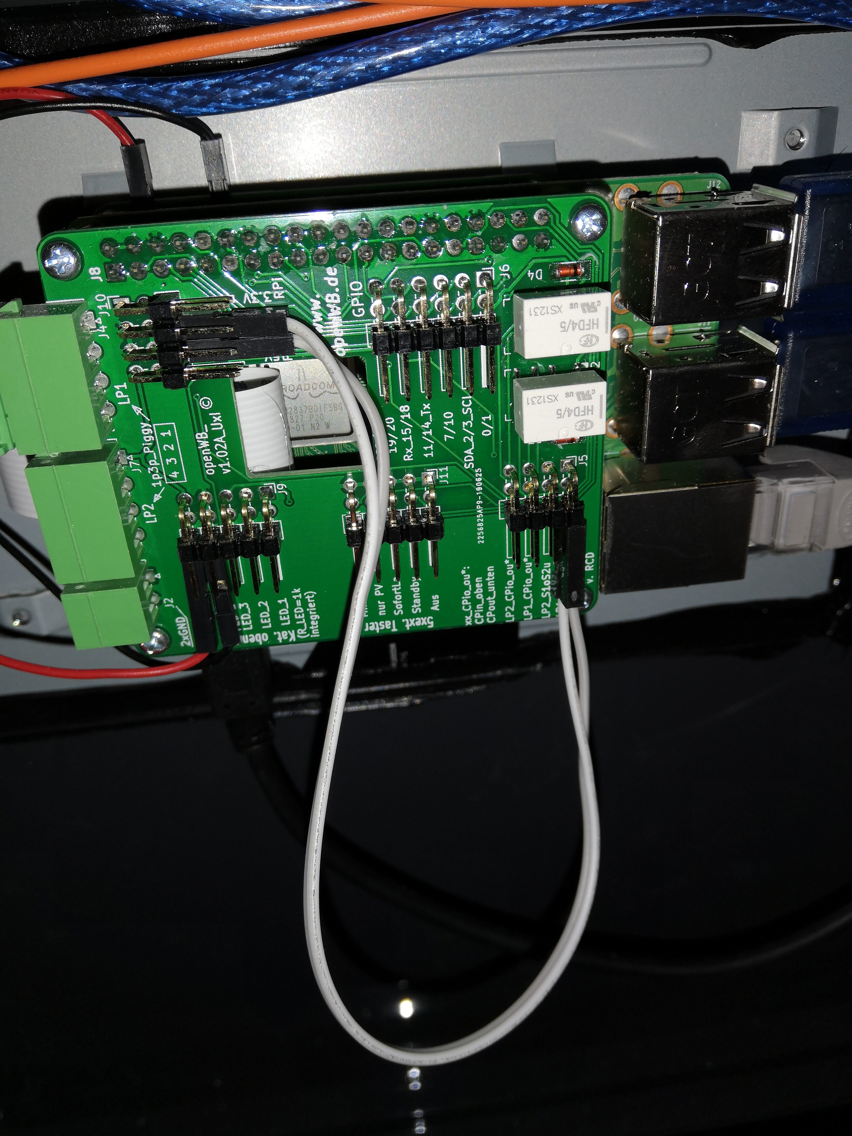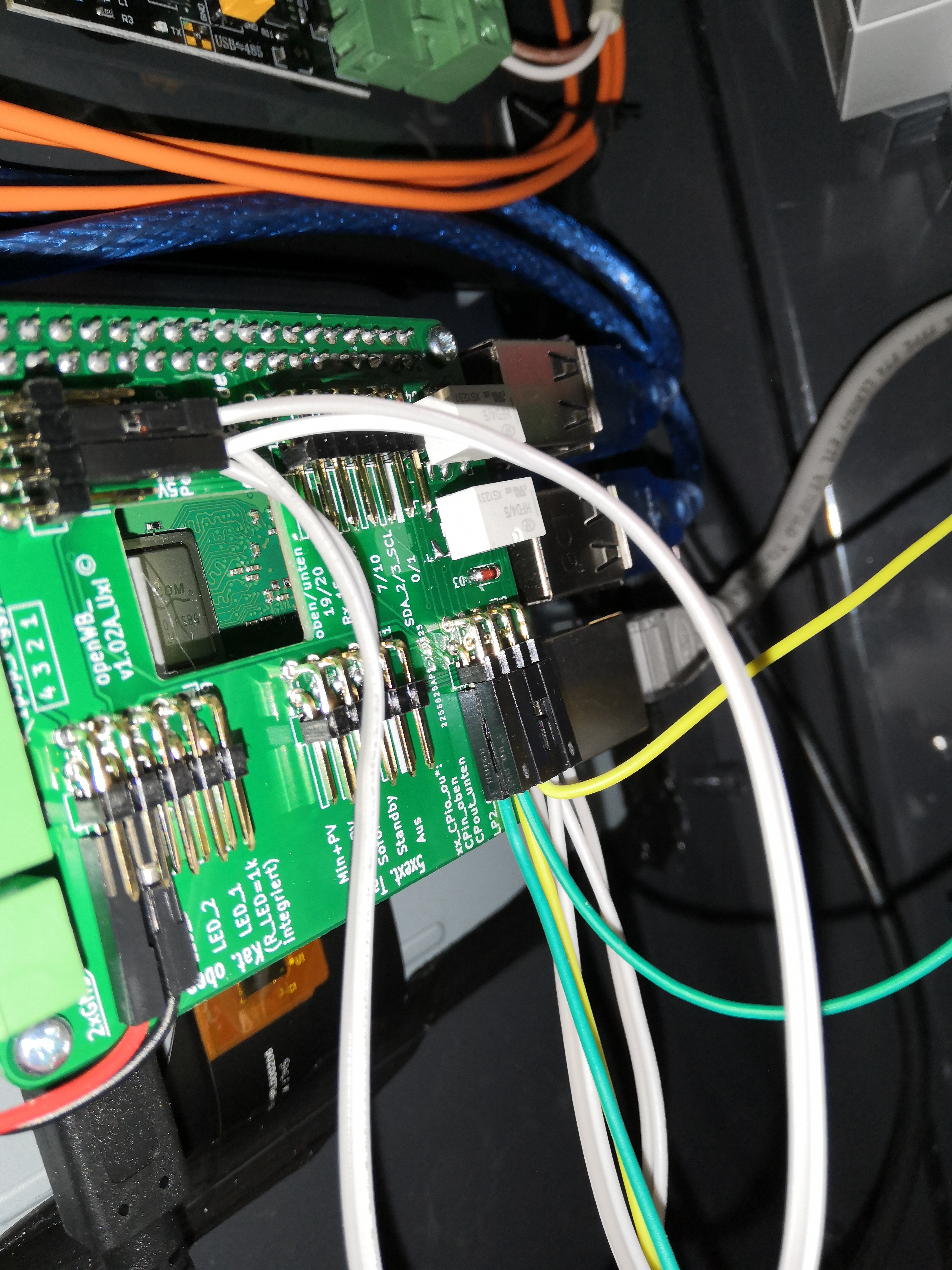 Die Kabel die an den CP Pins sind, sind leider noch zu kurz, daher kann ich da kein Foto machen. Die kann ich nur anschließen wenn die Tür schon fast zu ist. Da muss ich noch längere Kabel kaufen. Habe jetzt doch mal ein Foto mit allen Kabeln gemacht. Man kann es so einigermaßen erkennen.