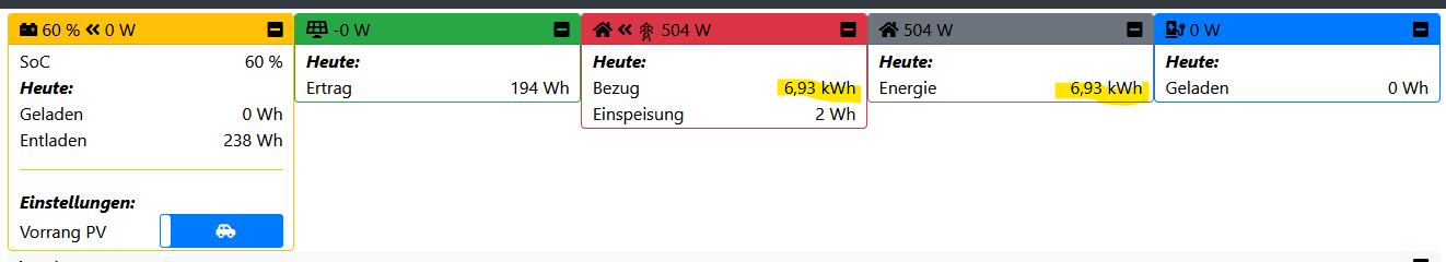Ist zwar heute aufgrund Schnee auf dem Dach nur wenig, dennoch wird PV und Speicher nicht berücksichtigt.