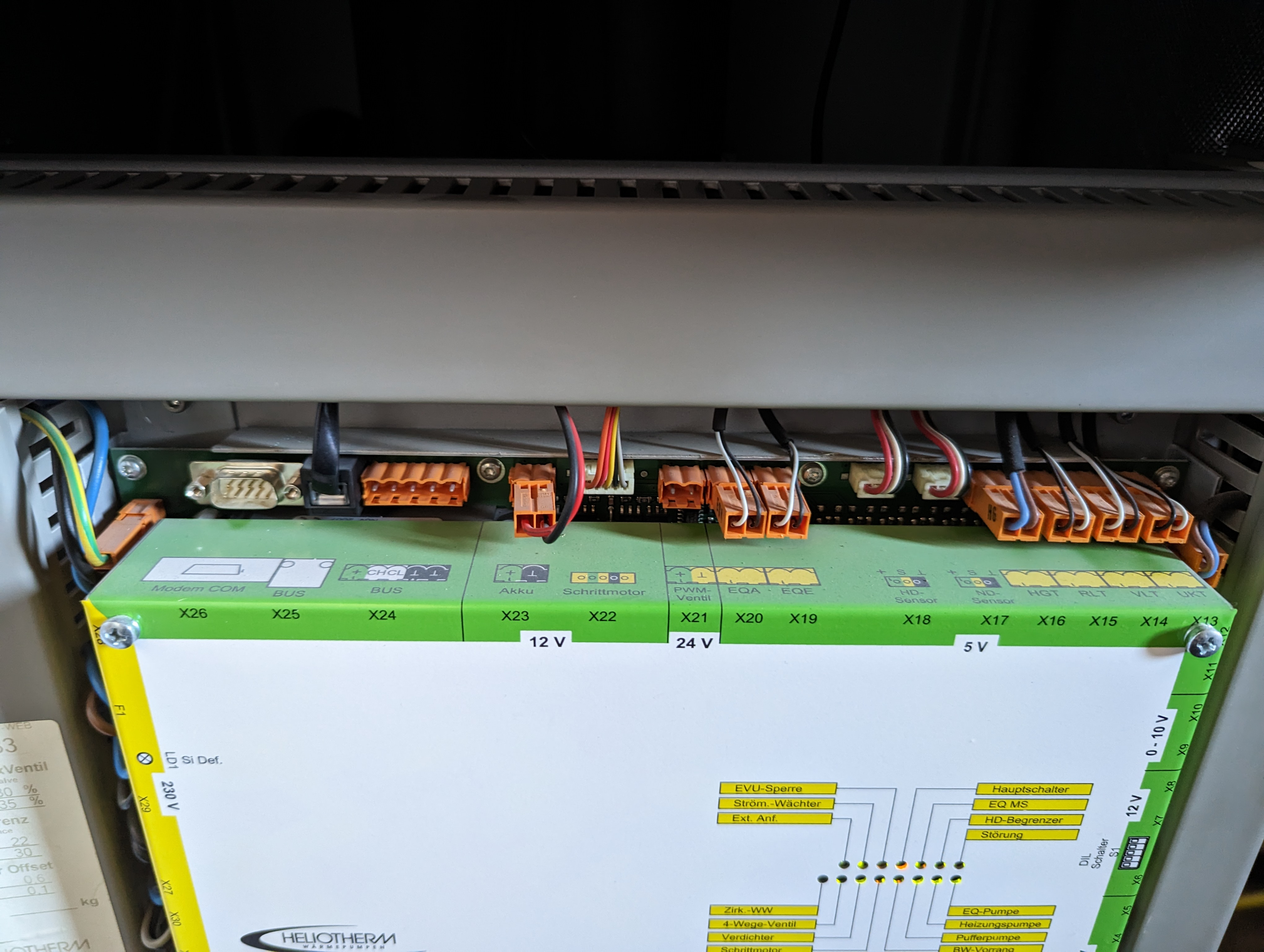 Hier Mal Bilder vom inneren meiner Wärmepumpe. Der Serielle Port lässt sich bestimmt anzapfen.