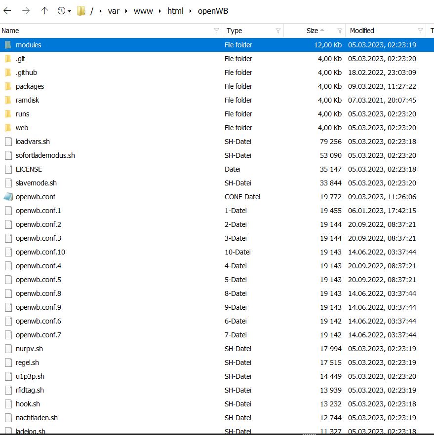 Hier der Inhalt, kommt mir sehr wenig vor:derNeueDet hat geschrieben: Do Apr 06, 2023 4:28 pm Das siehst du falsch. Klicke mal in /var/www/html/openWB