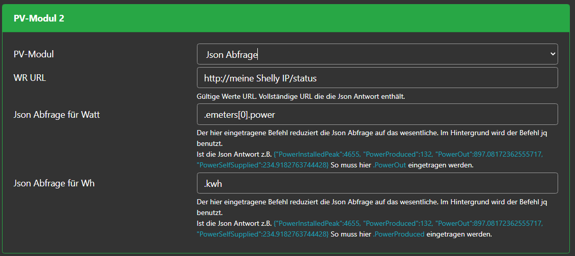 Wenn man den Eintrag "Shelly" beim PV-Modul wählt, kommt im übrigen die gleiche Meldung.