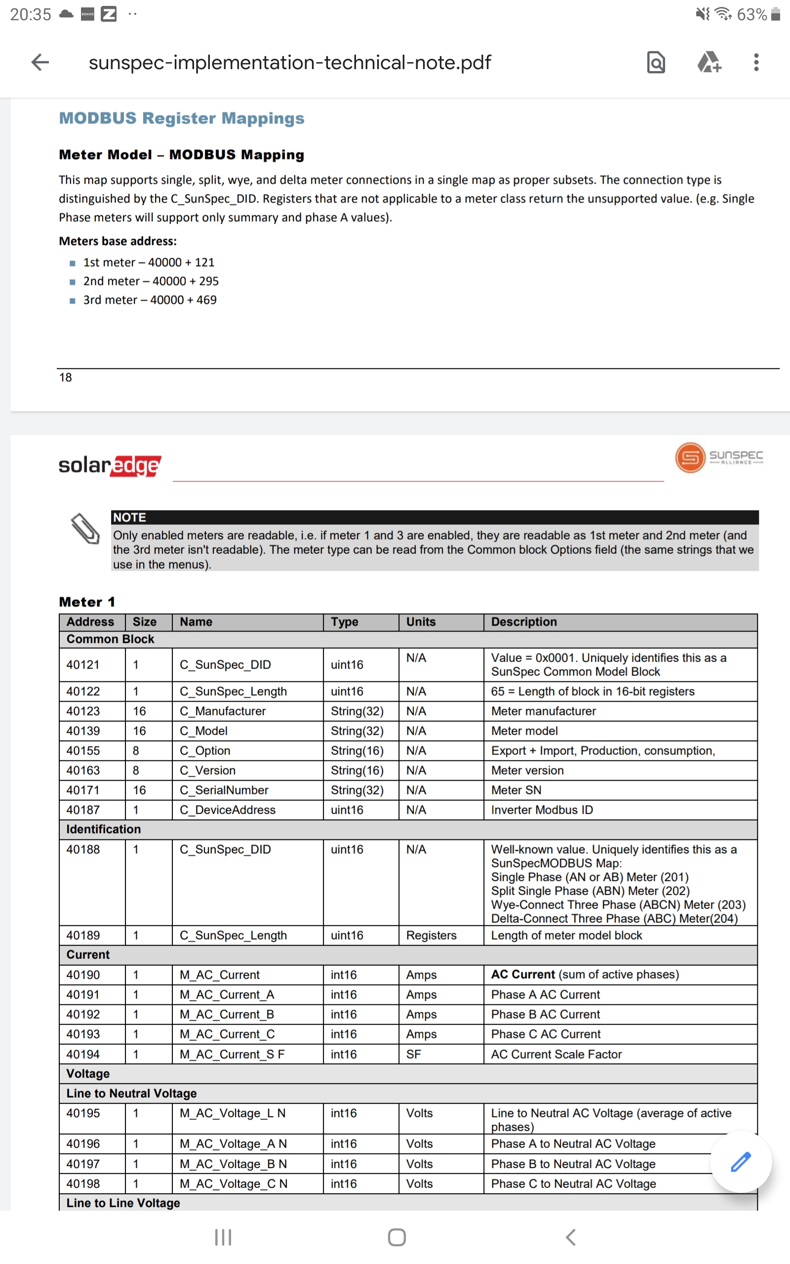 Die solaredge meter tabelle geht laut handbuch bei 40070 los, bei mir auf dem Raspi ist das -1