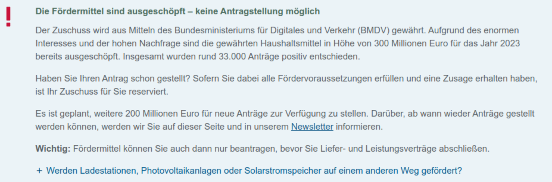 Naja die Anträge komme man ja nur innerhalb weniger Stunden an dem Tag schalten, wenn man ausreichend Glück hatte den Antrag absenden zu können.LutzB hat geschrieben: Fr Okt 27, 2023 10:46 am Ich denke, das Thema hat sich leider erledigt, bevor die KfW auch AC-Bidi-Boxen listen kann.