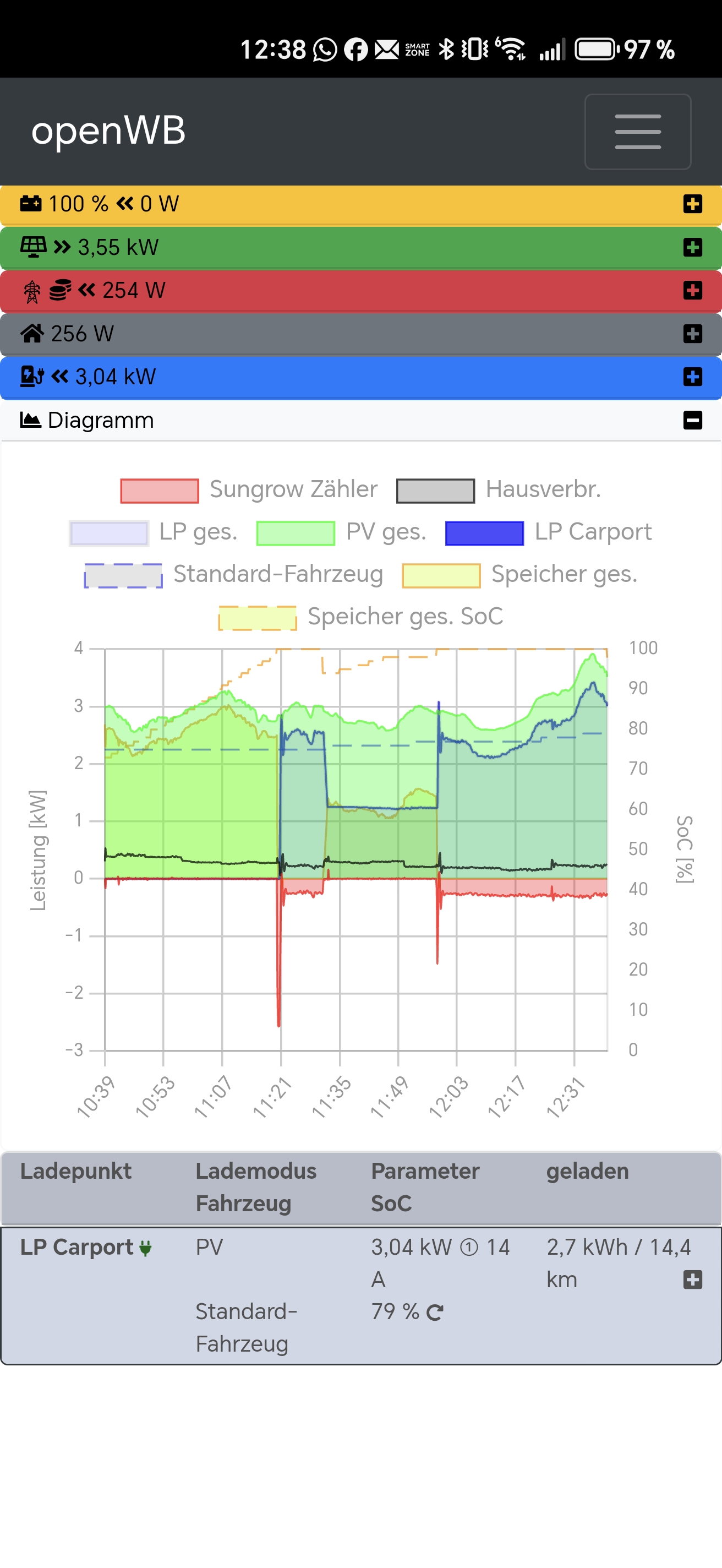 Ich habe jetzt von Priorität Hausbatterie auf Priorität EV umgestellt.....die OpenWB regelt auf nahezu Nulleinspeisung.