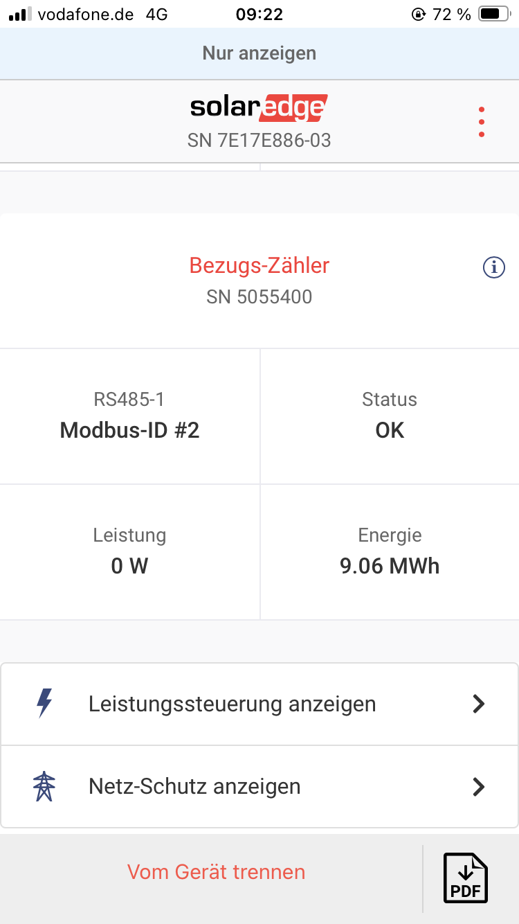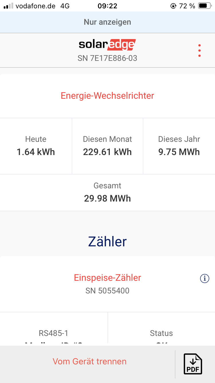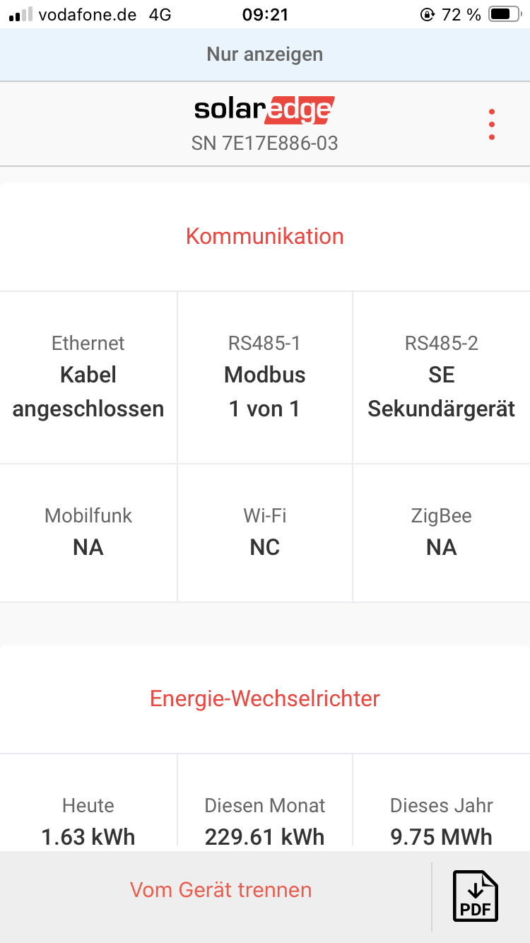 Dann werde ich morgen bei Solaredge anrufen und das einstellen lassen.