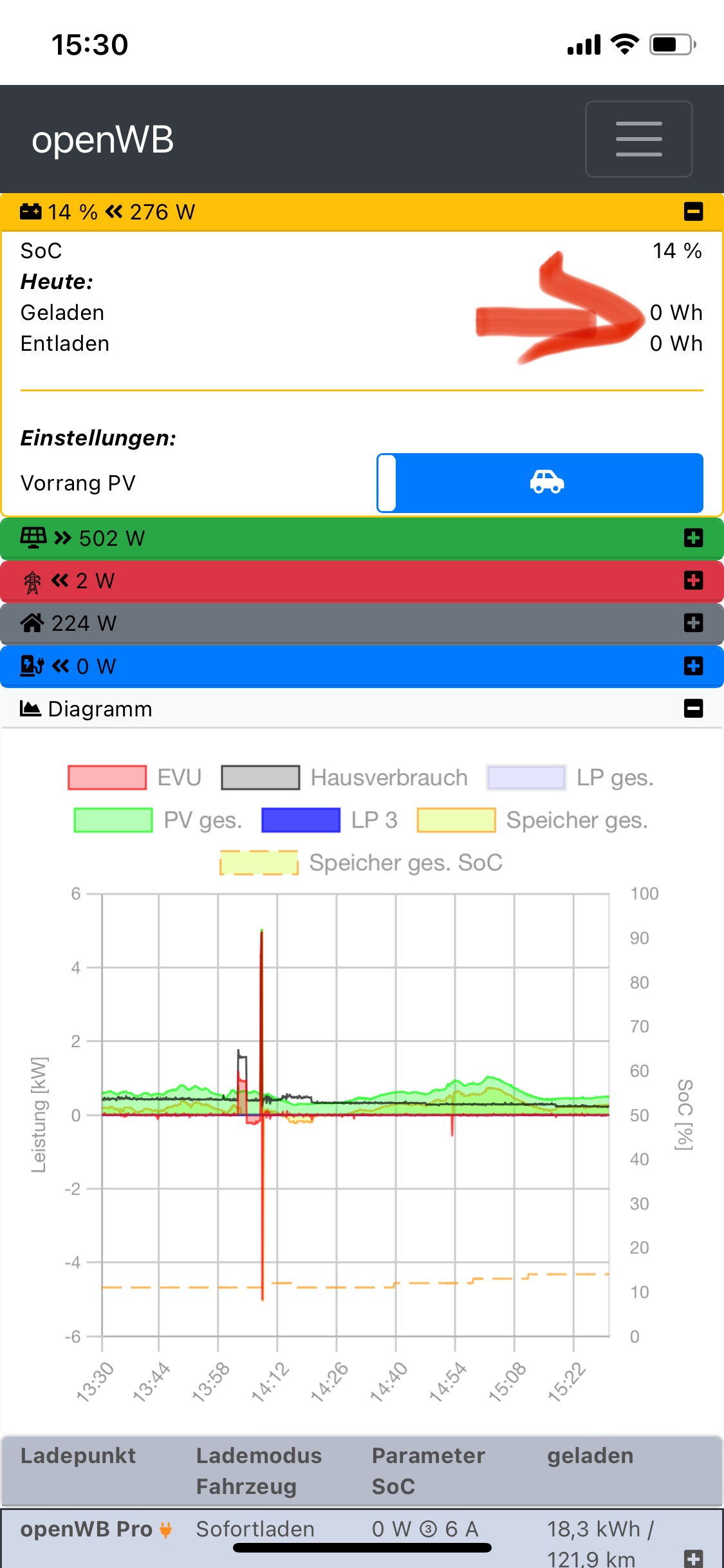 Bitte für den ausgelesenen SoC ein eigenes SoC Mudul anlegen. Namensvorschlag "openWB pro