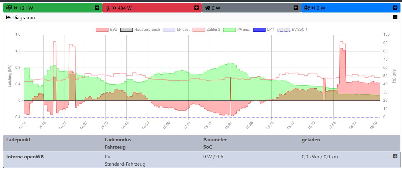 Ah, den Z1 kannst du gar nicht auslesen, nur Z2 und den WR? Dann musst du der openWB das so vorgaukeln, dass die WR-Leistung von Z2 mitgezählt wird.
