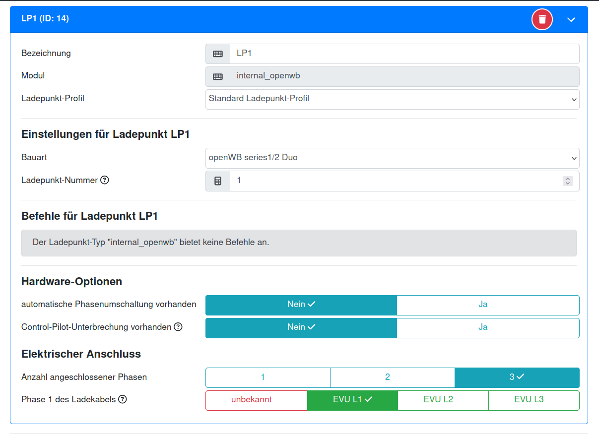 Wenn ich einen Ladepunkt mit der Bauart "openWB series1/2 in den Varianten custom, standard & standard+" konfiguriere bekomme ich eine Erfolgsmeldung im Status. (Modul meldet keine Fehler). Dann kann ich aber keinen zweiten Ladepunkt einrichten.