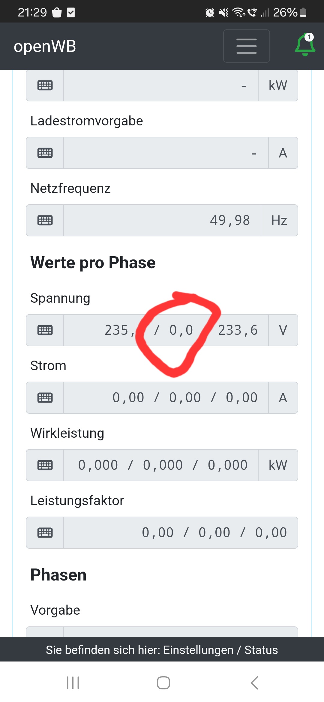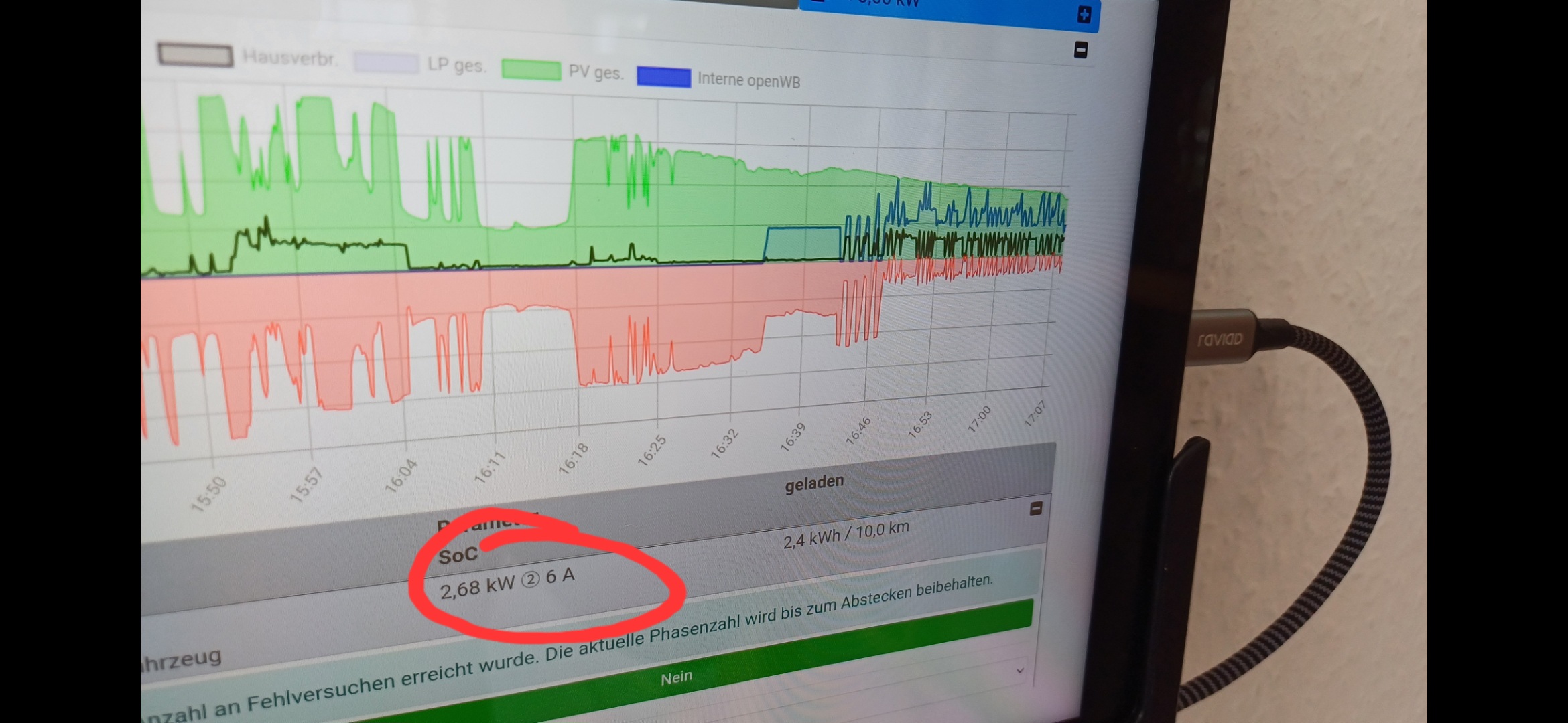 Ebenso ist mir aufgefallen, dass beim 3 phasigen laden, die Anzeige durchgehend zwischen "3" und "2" wechselt.