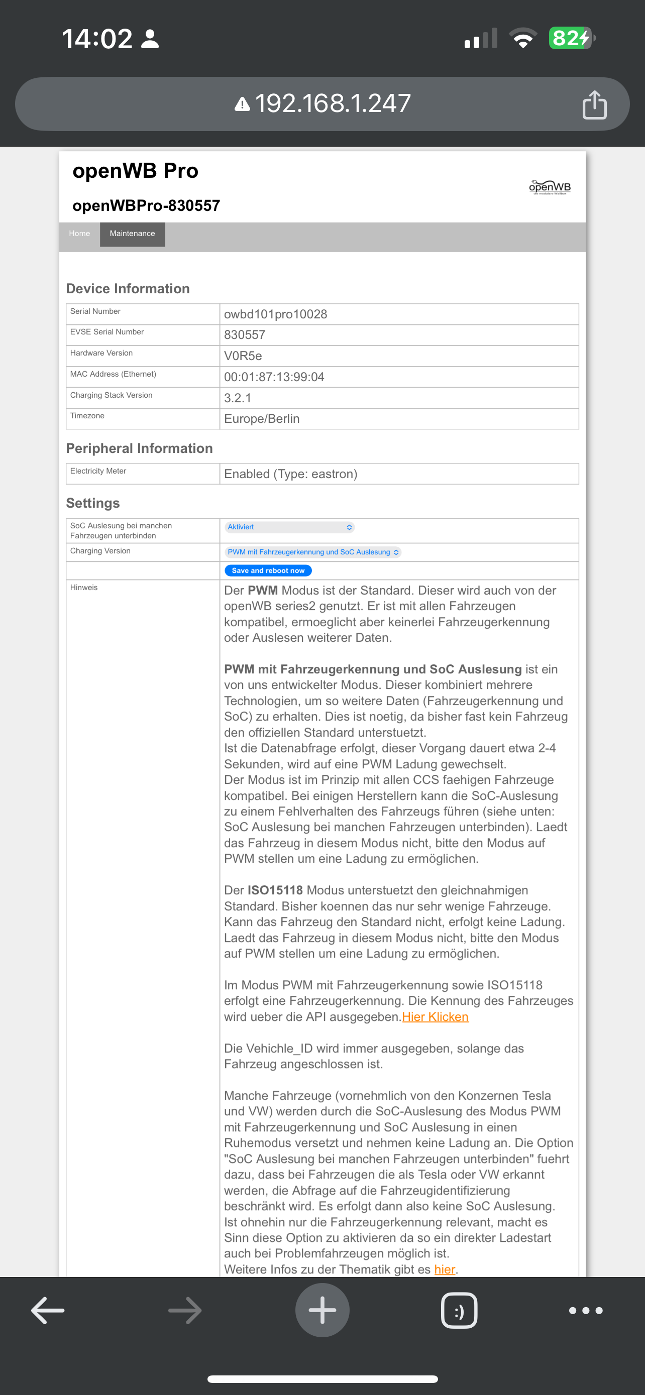 1. auf dem Main-GUI "Sofortladen" eingestellt und Slider für Sollstromvorage prüfen. Lt. Pro-website wird mit 10A geladen. Wie kommst du auf 6A?