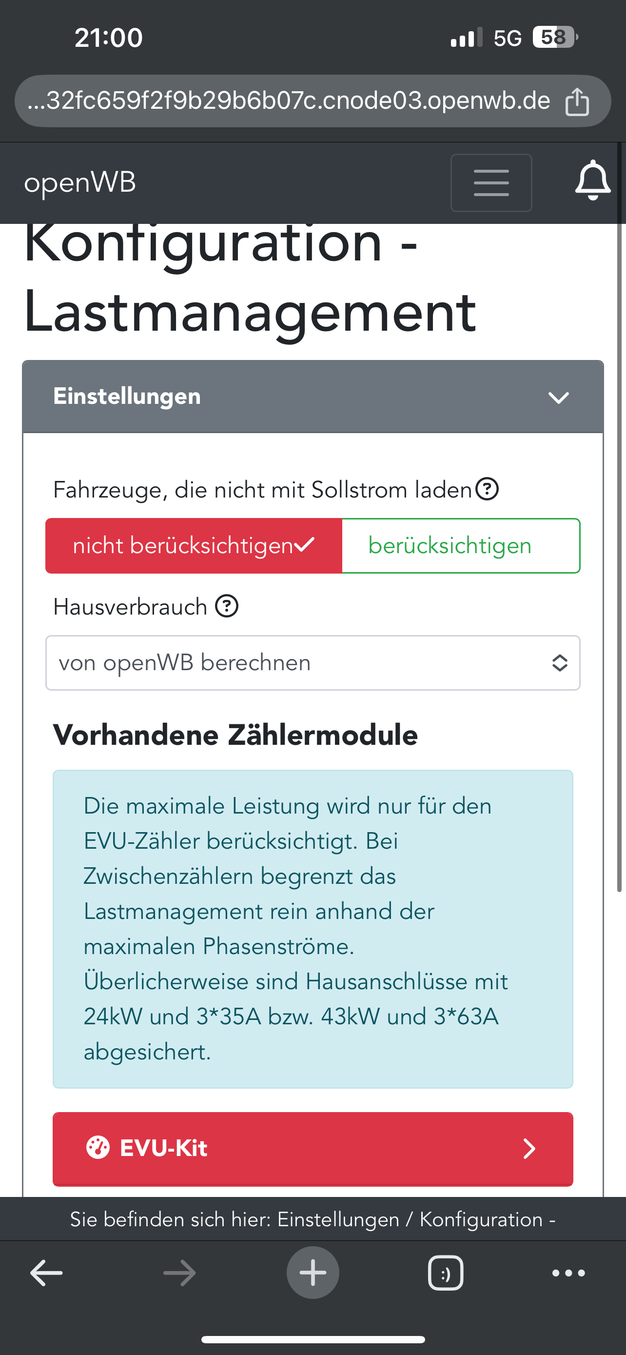 2. Unter Status den Zähler mit ID6 suchen. Im Lastmanagement prüfen, was dort für Grenzwerte eingestellt und ggf. unpassend sind.