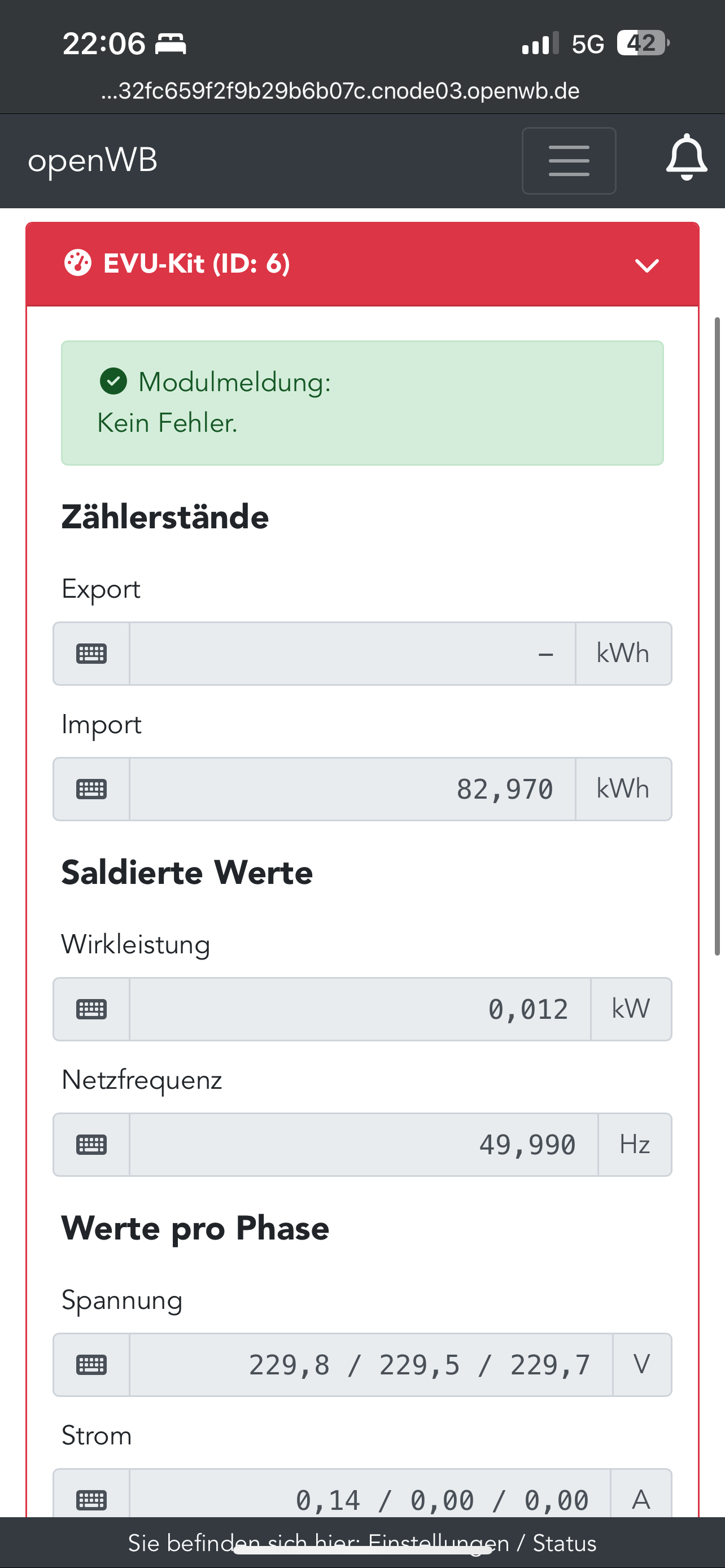 Die Phase 1 der openWB sieht komisch aus (min. Ladestrom ohne dass geladen wird). Bitte mal beobachten.