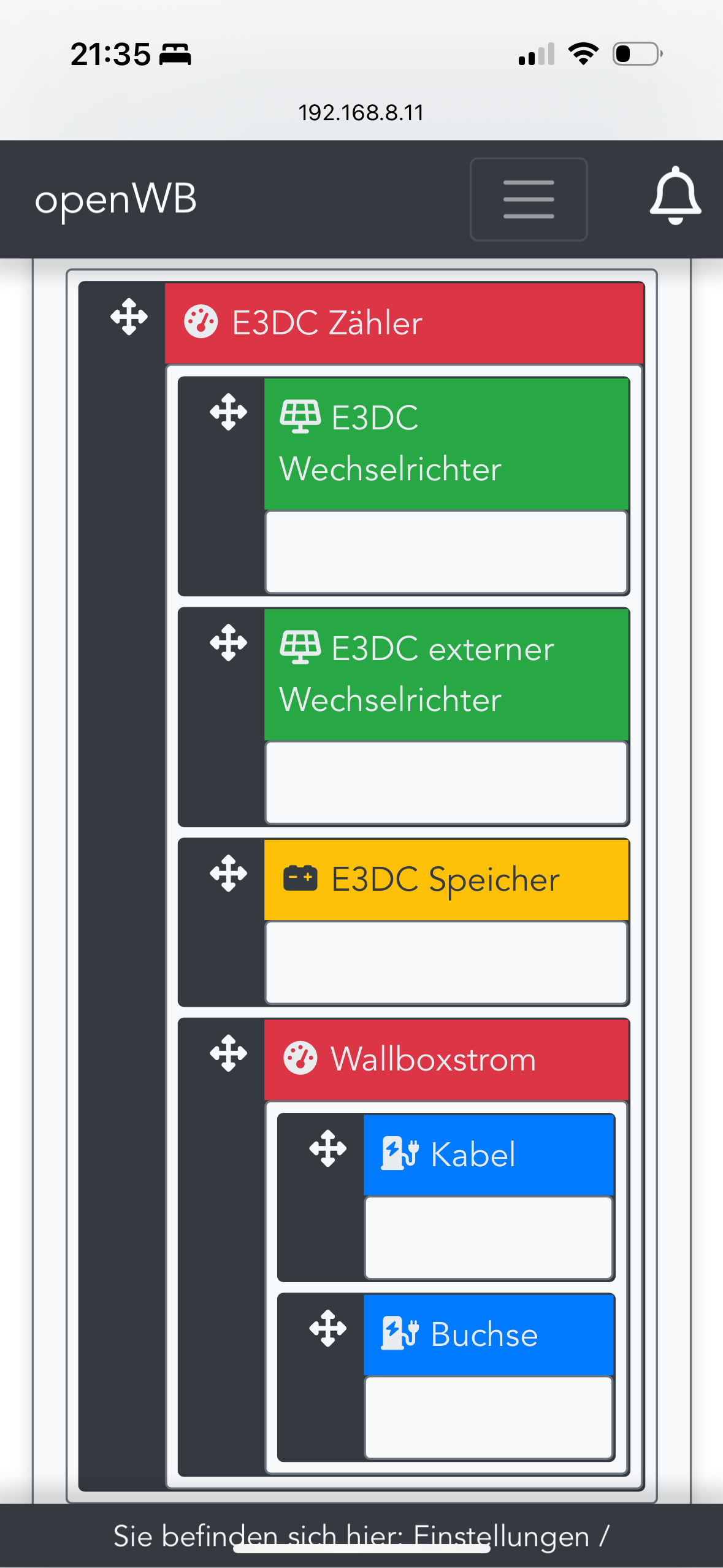 Ich habe auch e3dc als reine Speicherlösung. Wenn du keine e3dc pv Module hast, würde ich den e3dc Wechselrichter löschen und nur den externen e3dc Wechselrichter drin lassen.