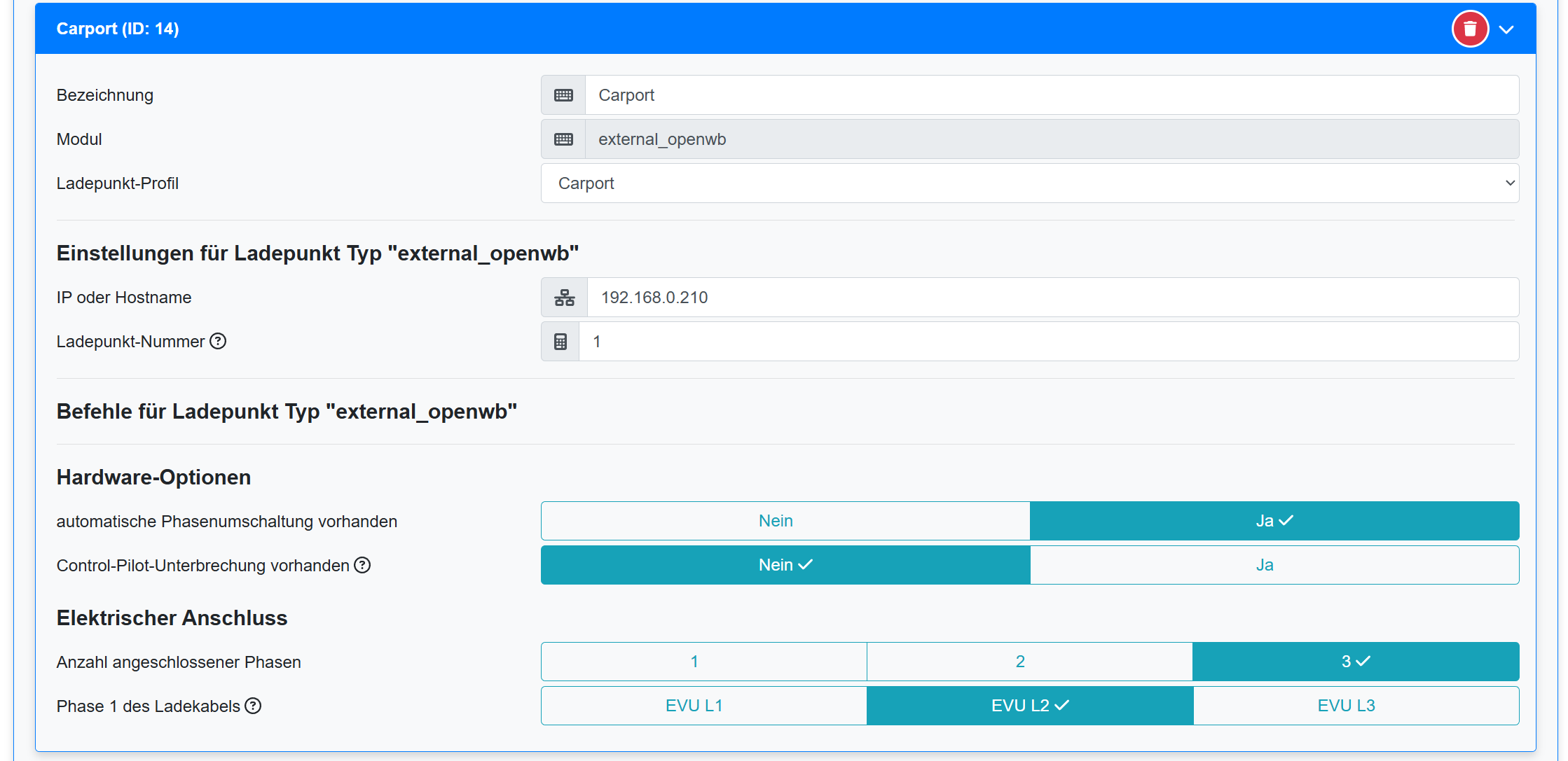 Hier noch die Konfig des Ladepunkte