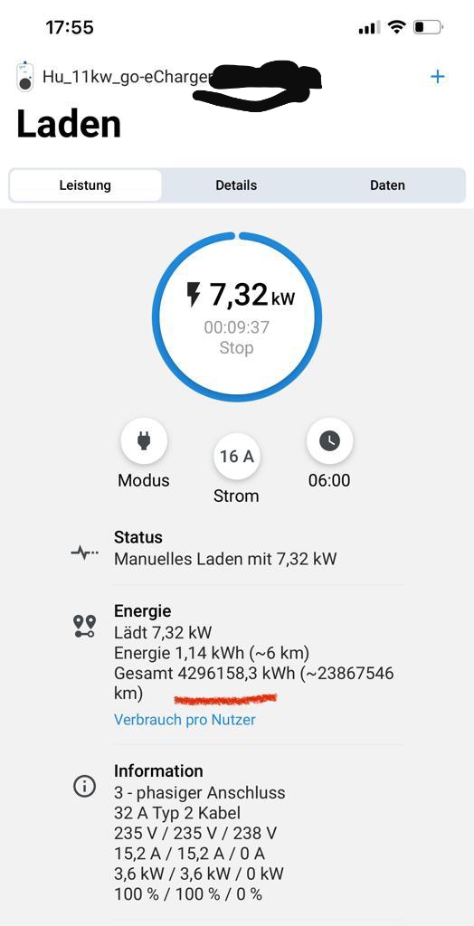 Nach massiver Beschwerde hat go-e heute aus der Ferne den Zählerstand auf "ca- richtig" korrigiert!