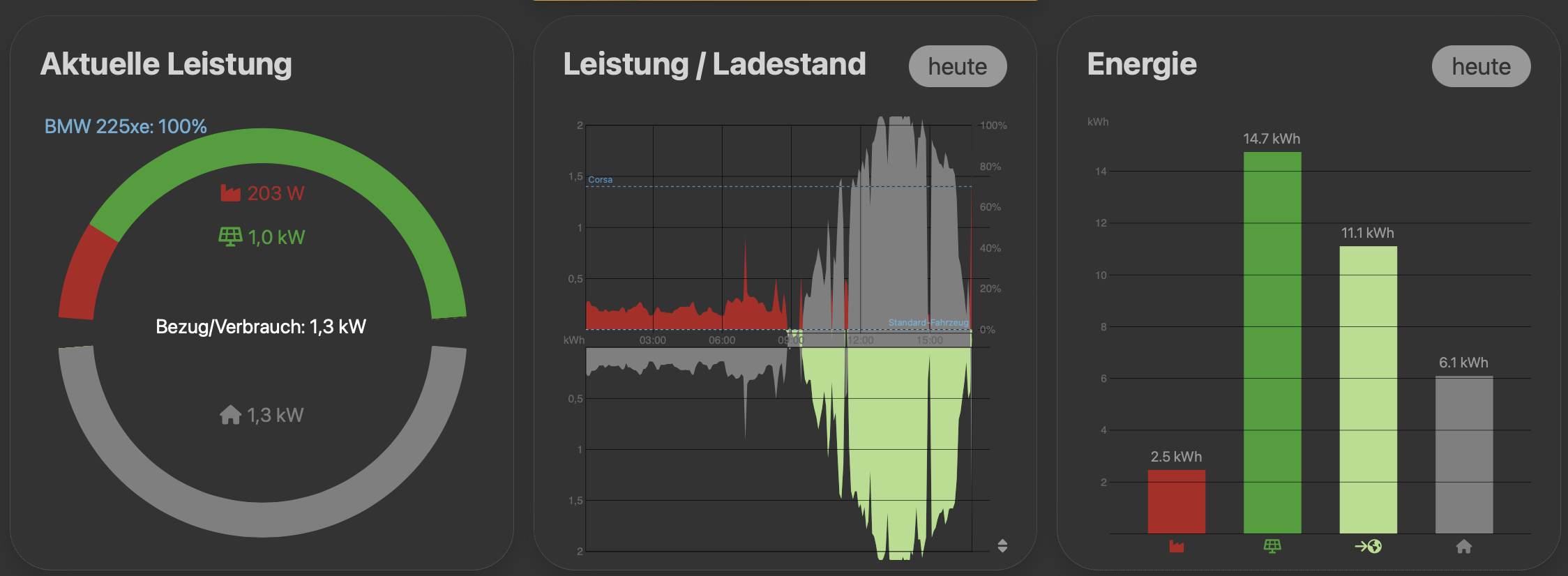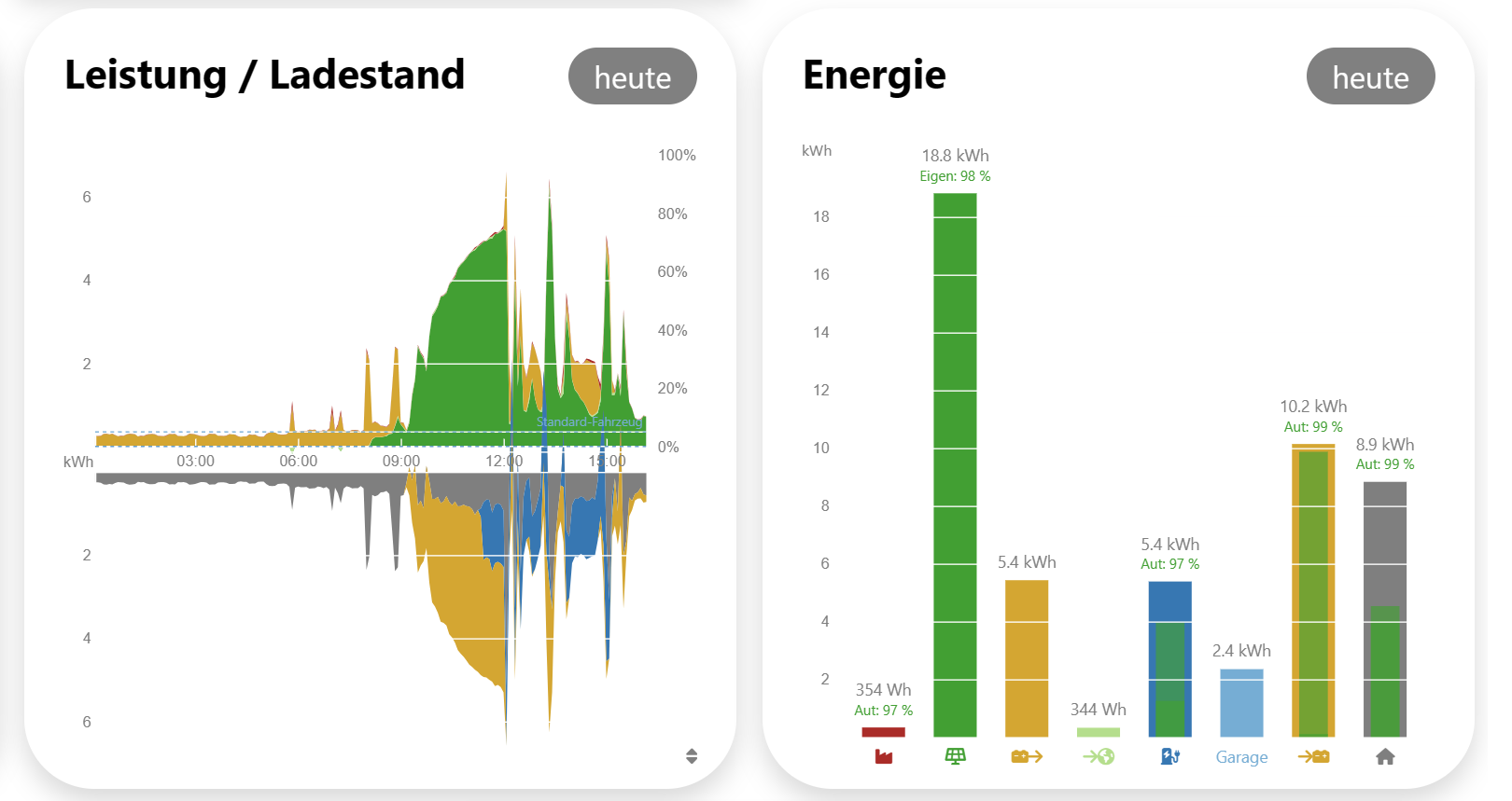 Bei mir sieht die graphische Tagesansicht auch nicht richtig aus. Mit dem Standard-Theme (alt) passt alles. Die Balken sind wohl richtig, aber sie passen rechnerisch nicht zu der Grafik. Und die Daten für den PV-Ertrag würde ich in der Grafik als grün gezeichnet suchen. Da ist aber nichts.