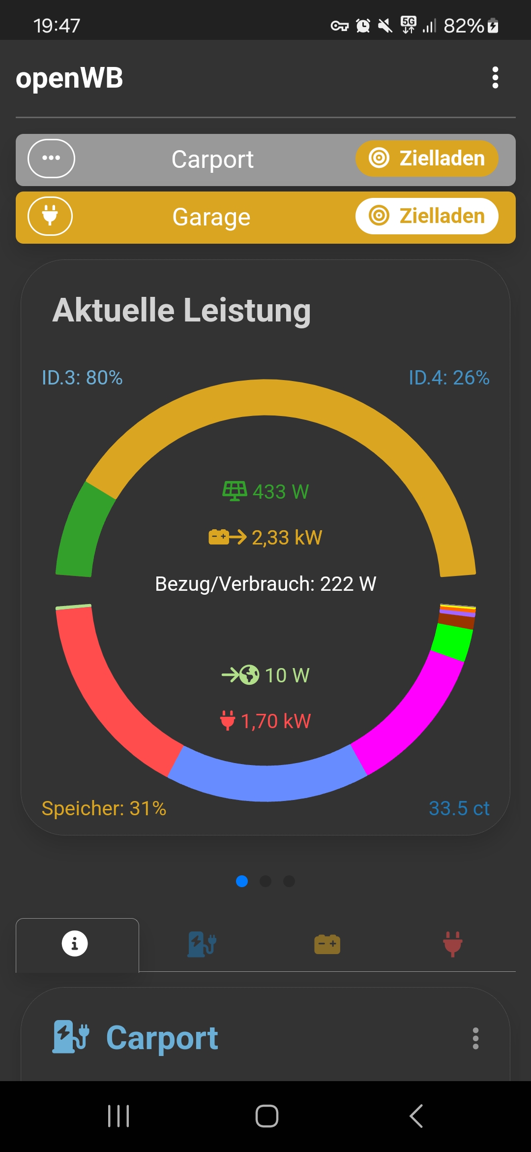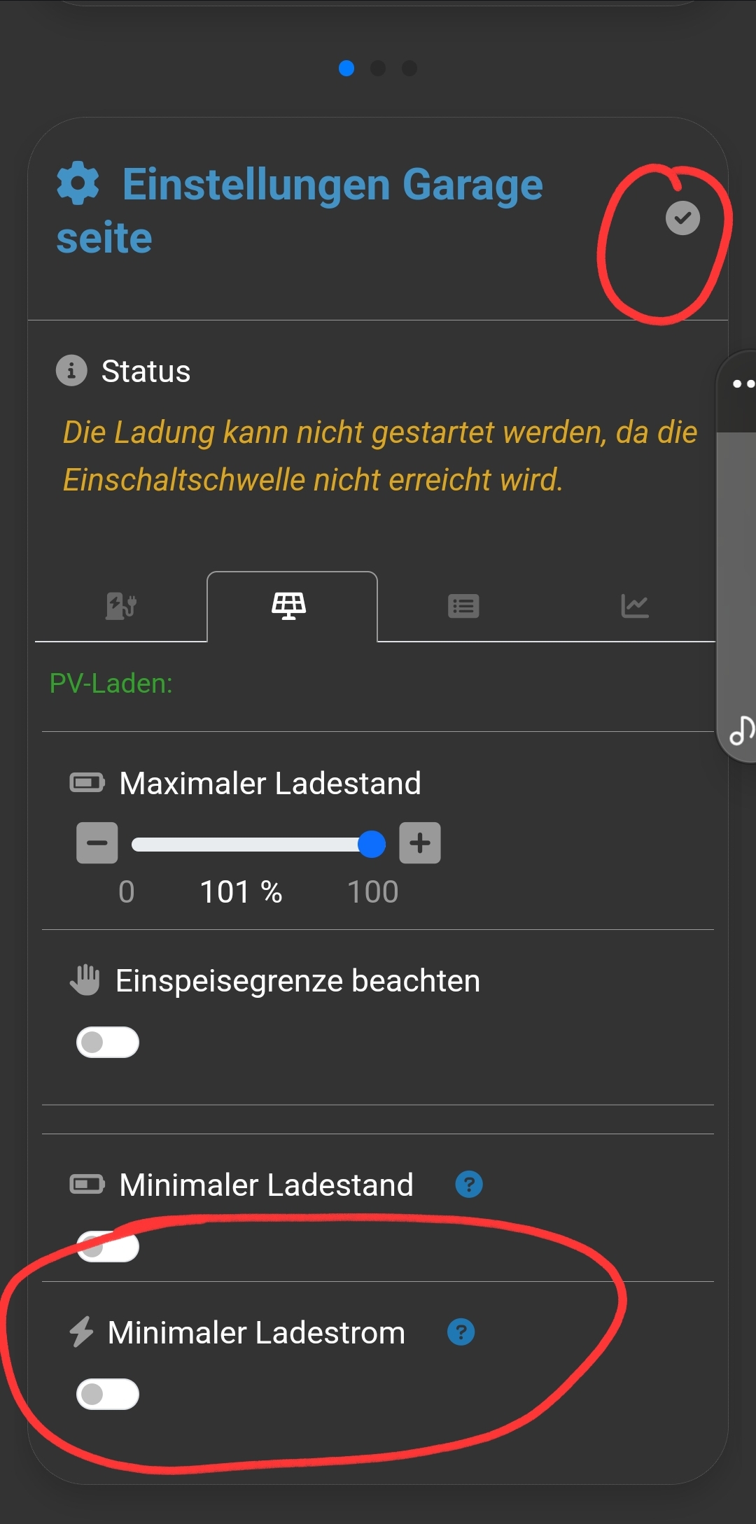Ist natürlich vorhanden. Einfach beim Ladepunkt oben rechts klicken und dann im Reiter im 2. Abteil zu sehen.JimRockford hat geschrieben: Fr Apr 26, 2024 4:10 pm Ist noch geplant, in den Lademodi Sofort und PV die Einstellung der (minimalen) Stromstärke zu integrieren? Oder gibt es das schon irgendwo und ich habe es nur übersehen?
