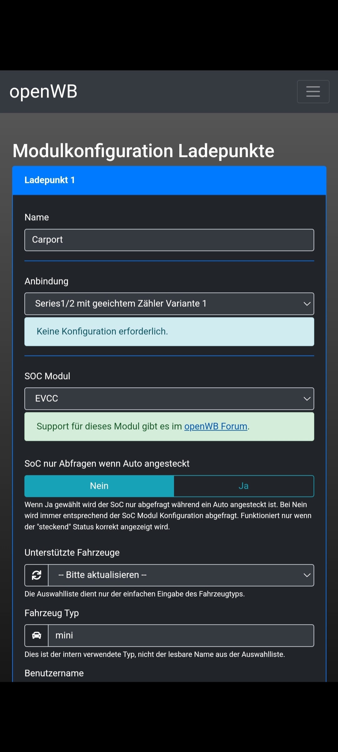 Also, da ich das Thema nochmals losgetreten habe... als Nutzer des openwb Frontend kann ich zwar grundlegend euren Schildungen folgen, aber natürlich kann ich nichts manuell anpassen....