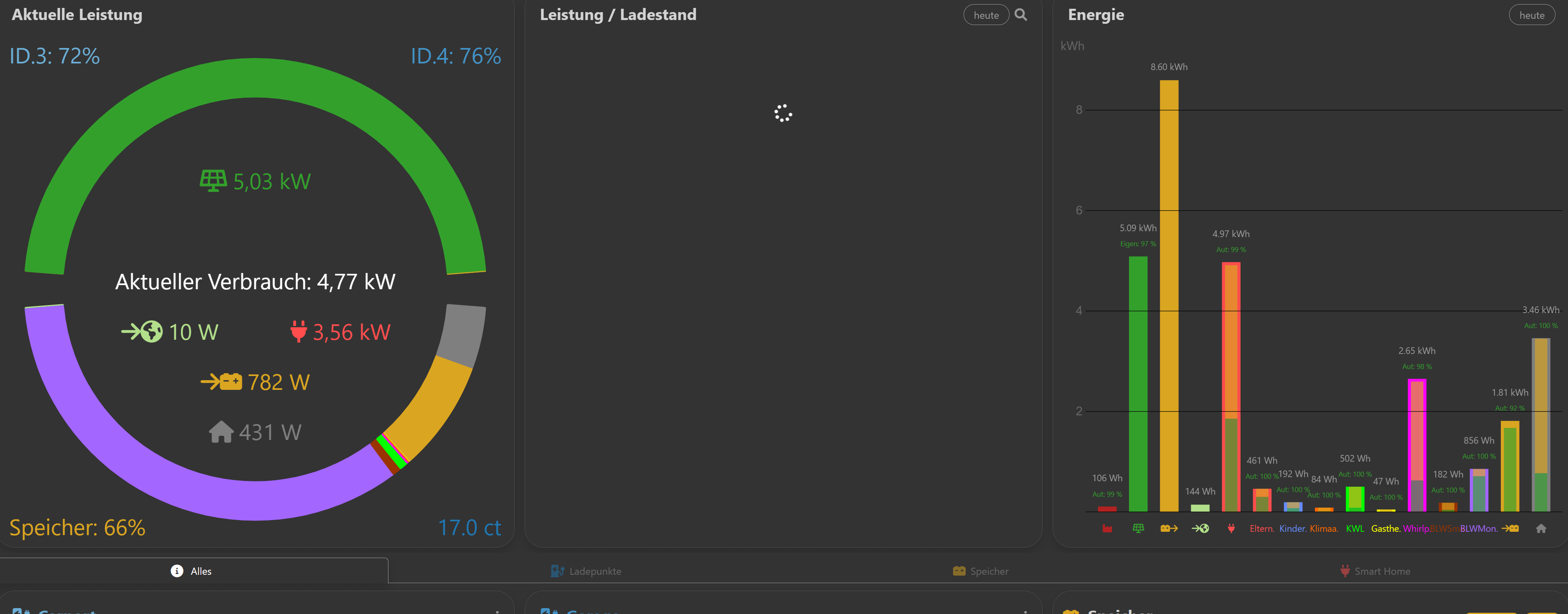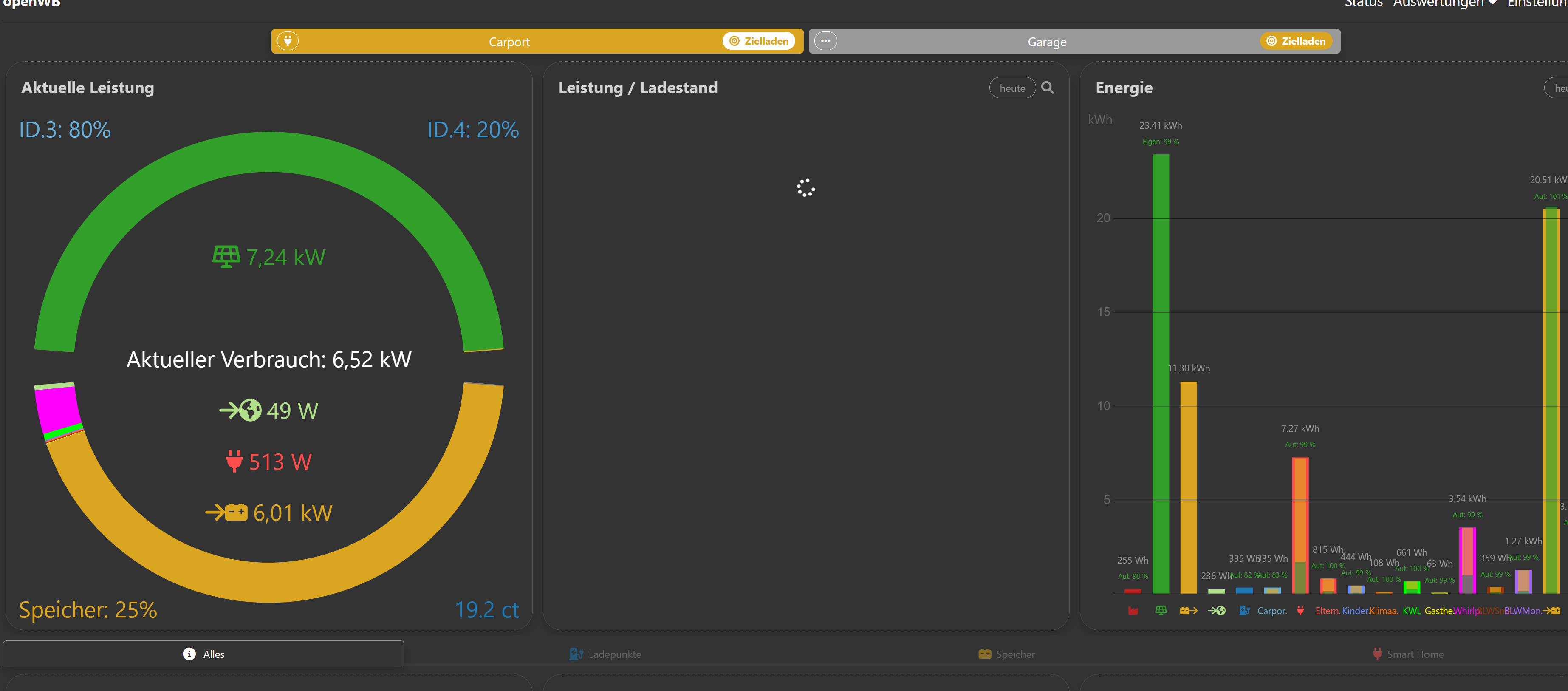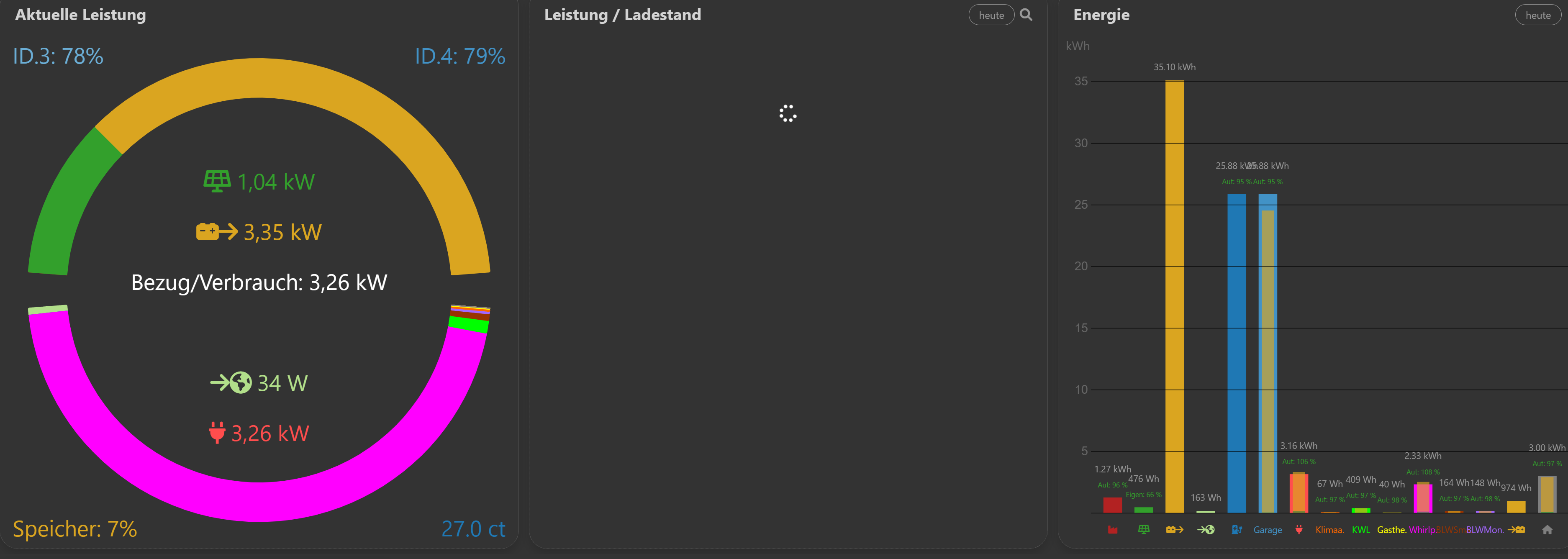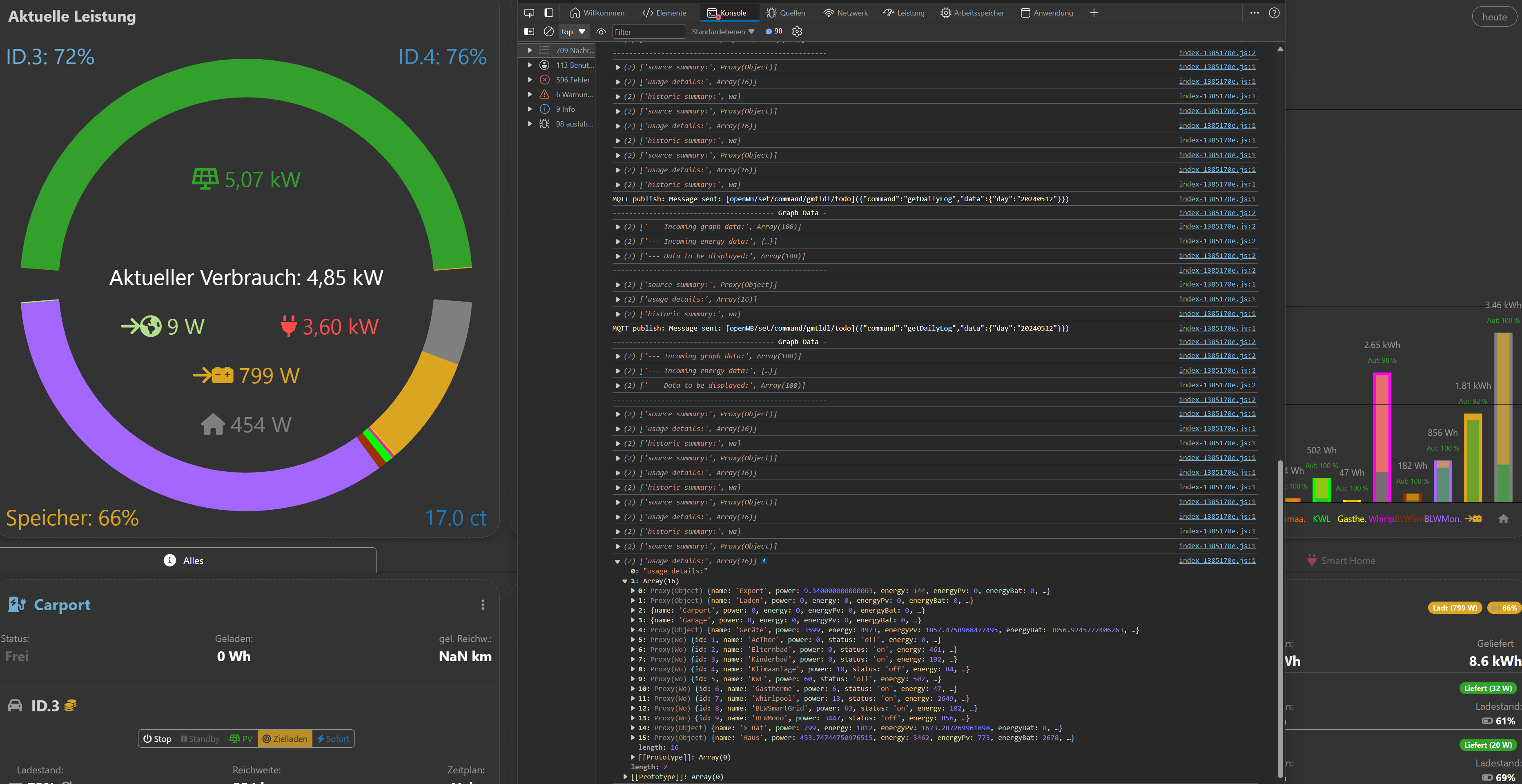 Danke. Die Werte in der Console entsprechen dem, was angezeigt wird - Ca 3.2 kW Verbrauch für die Geräte und kein Hausverbrauch.