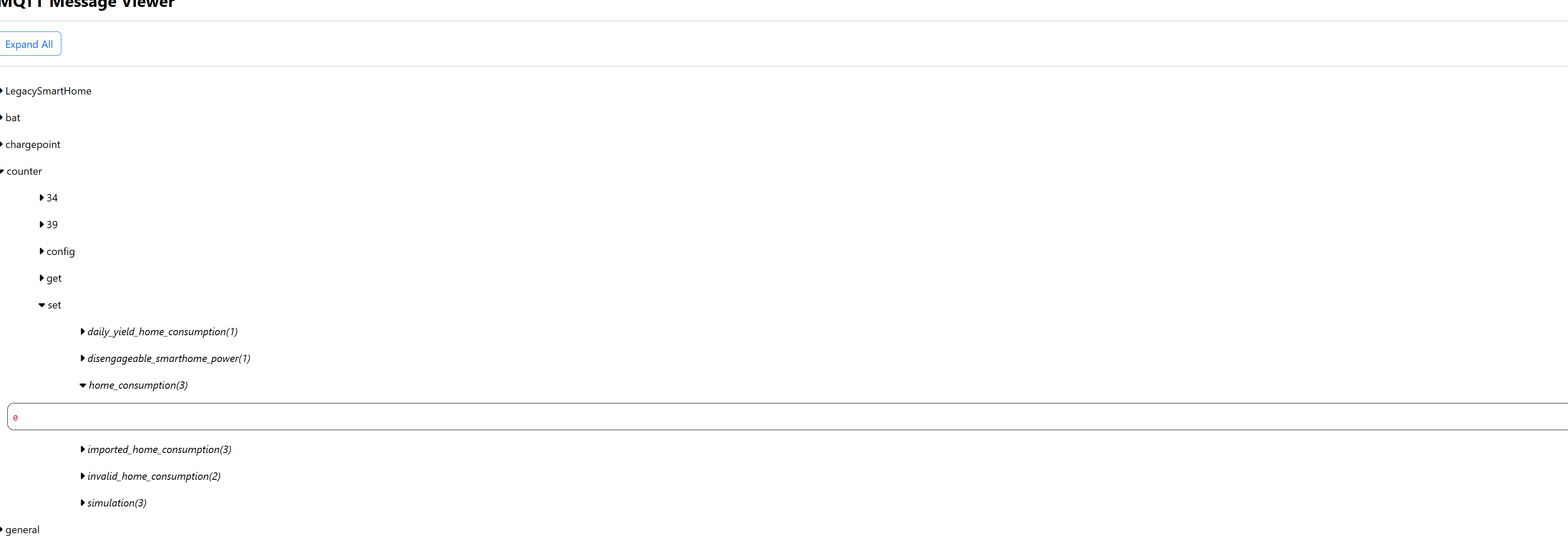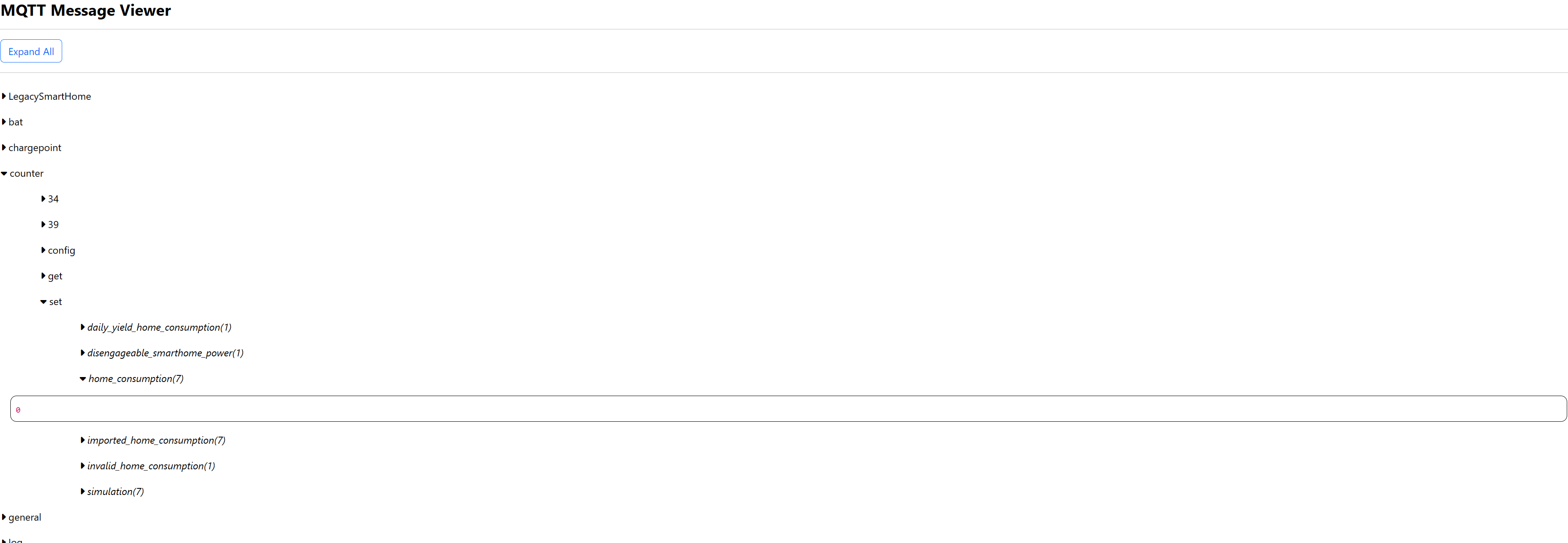 Die 0W für den Hausverbrauch kommen so von der openWB, das sieht man an dem Screenshot vom MQTT-Topic.