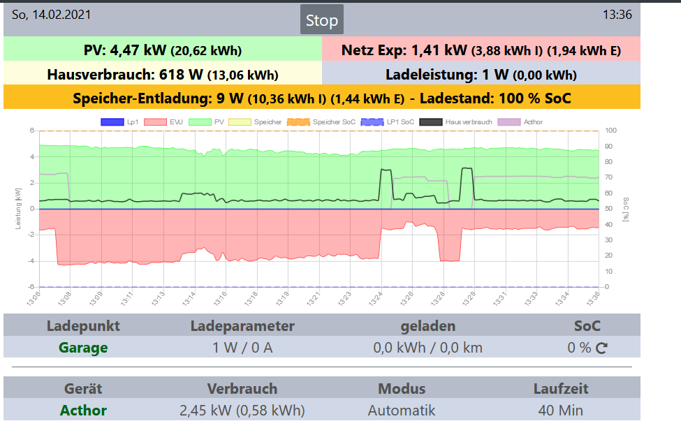 2021-02-14 13:22:04: (1) Acthor Überschuss 3444 größer Einschaltschwelle100