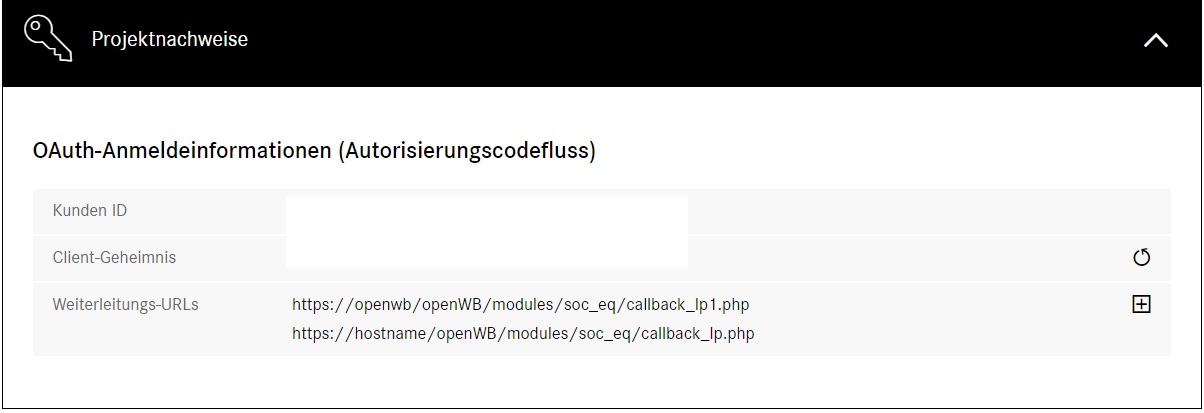 Zeig mir bitte Screenshots der Redirect URL in der Mercedes Developer Console und in der Ladepunkt Konfig in der openWB.Abgespeichert, aber am Ende die Fehlermeldung 400-invalid redirect_uri.