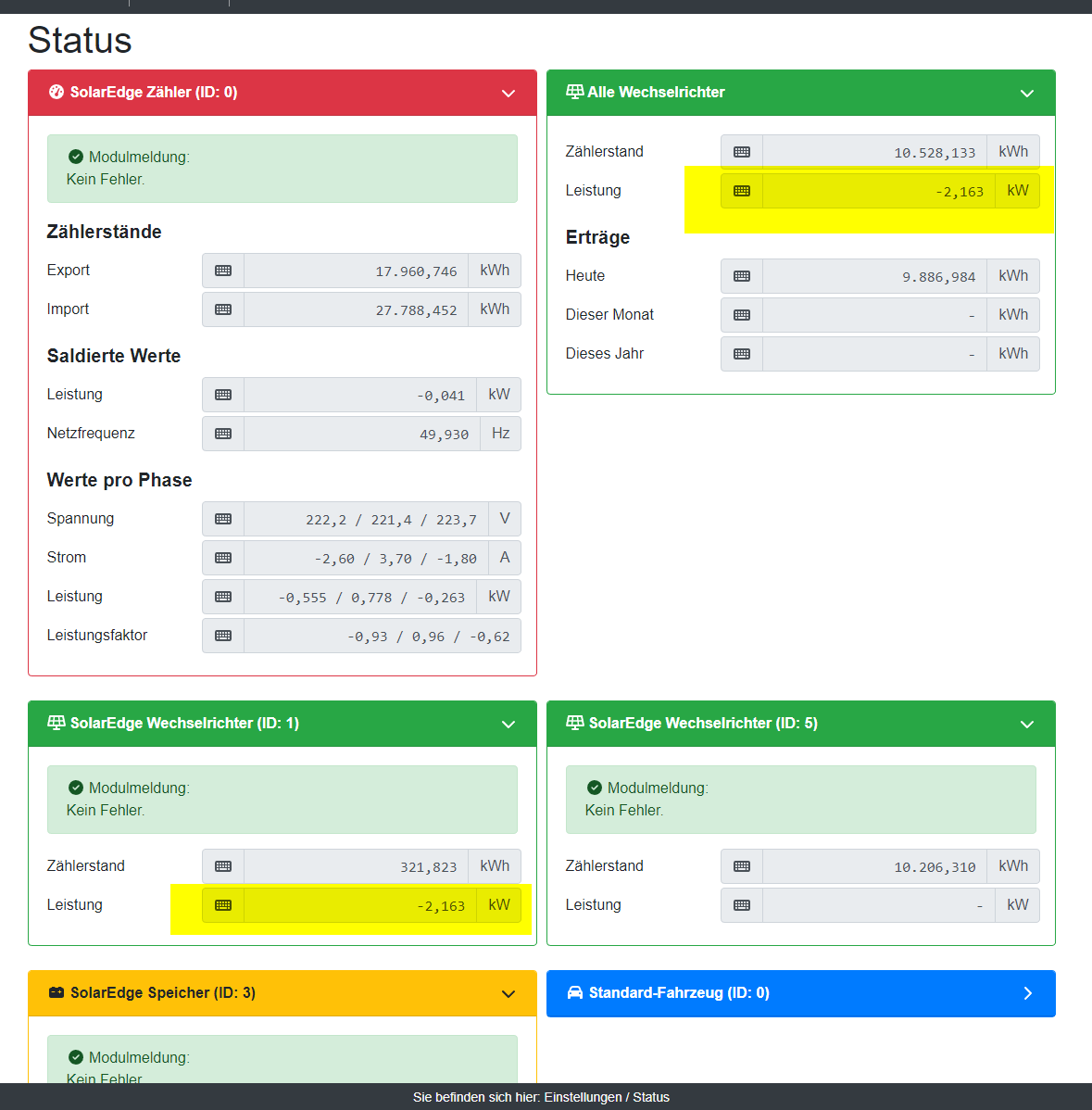 Lässt sich denn irgendwie erkennen, ob ge- oder entladen wird? Uns sind in dem Zusammenhang zumindest Probleme bekannt, wenn der WiNet Dongle verwendet wird. Am normalen LAN Port wird wohl ein Vorzeichen mitgeschickt.