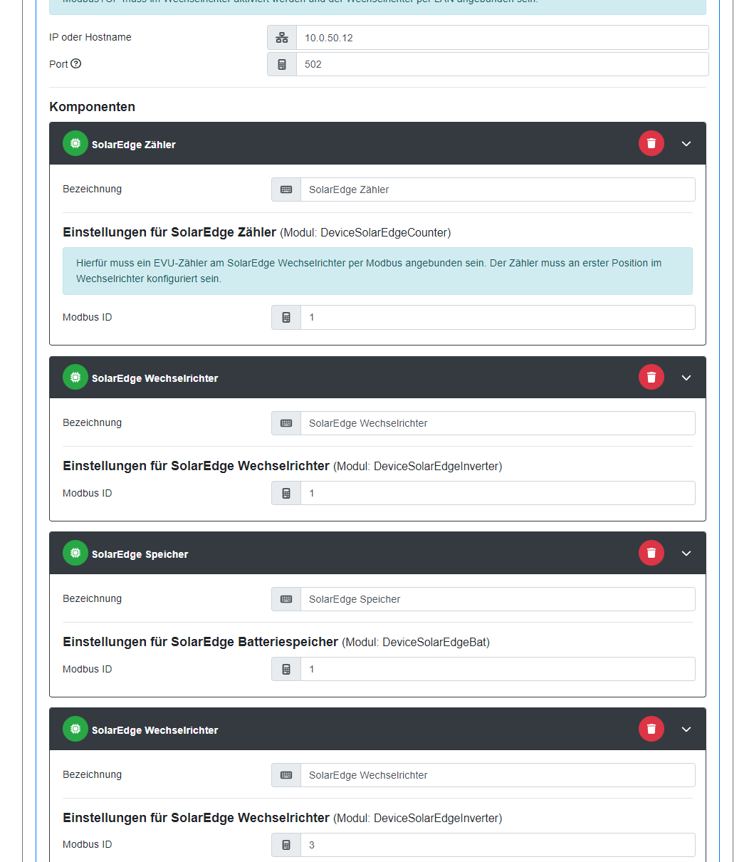 2023-02-25 13:24:03,710 - {modules.common.fault_state:40} - {ERROR:device1} - SolarEdge Wechselrichter: FaultState FaultStateLevel.ERROR, FaultStr modules.common.modbus <class 'modules.common.fault_state.FaultState'> ('modules.common.modbus Modbus Error: [Input/Output] Modbus Error: [Invalid Message] No response received, expected at least 8 bytes (0 received)', <FaultStateLevel.ERROR: 2>), Traceback: