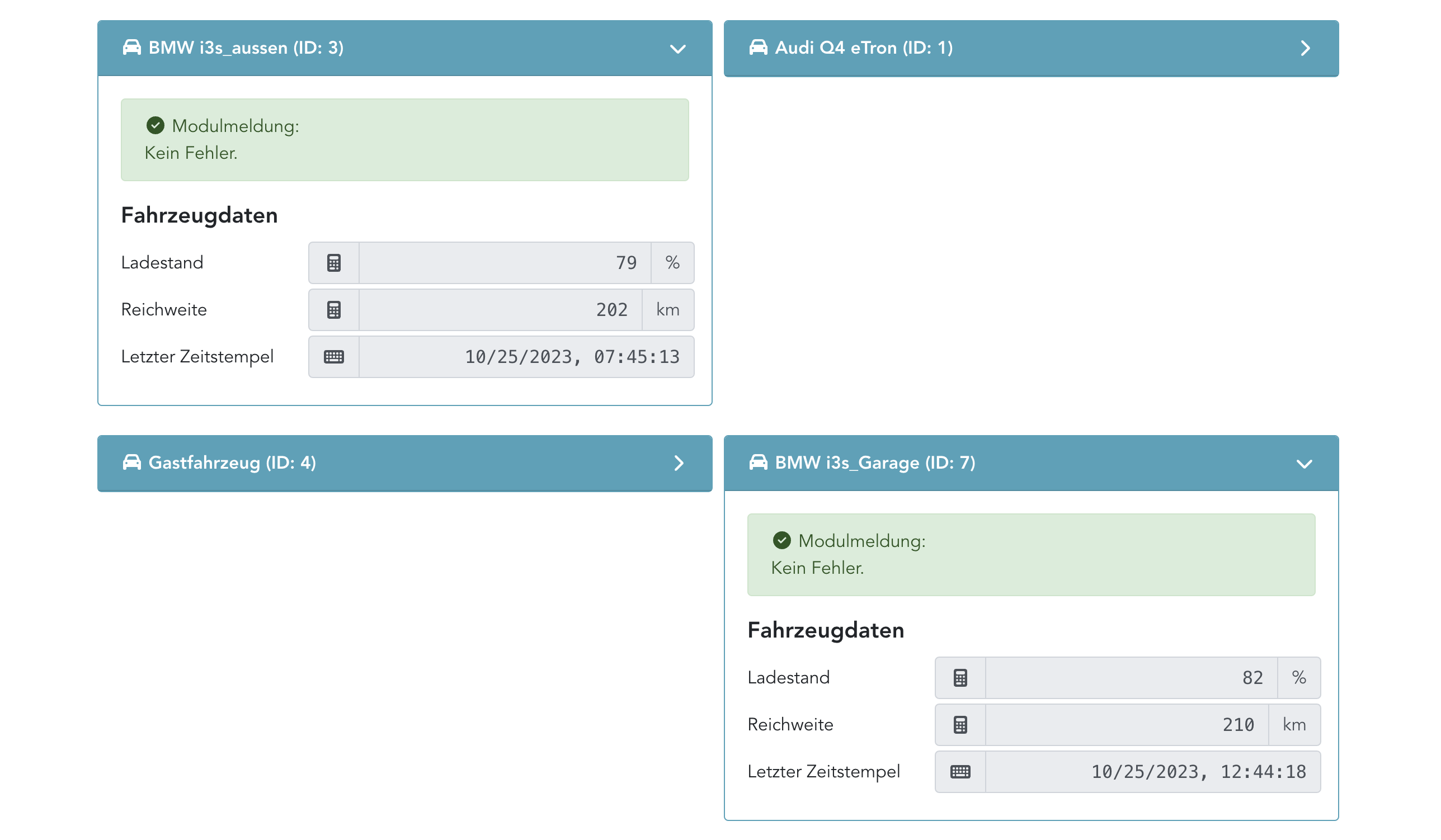 Ich habe 2 WB (primary+secondary) und jeder WB die Autos (in meinem Beispiel BMW i3).