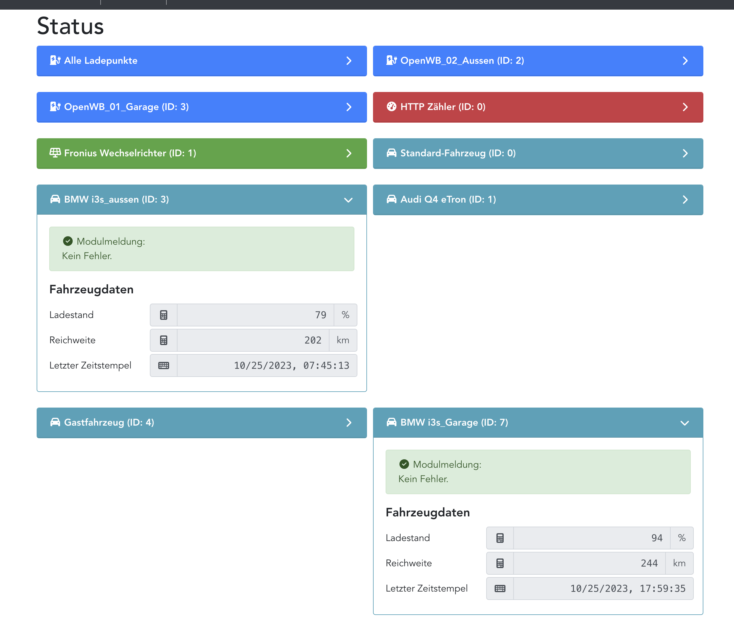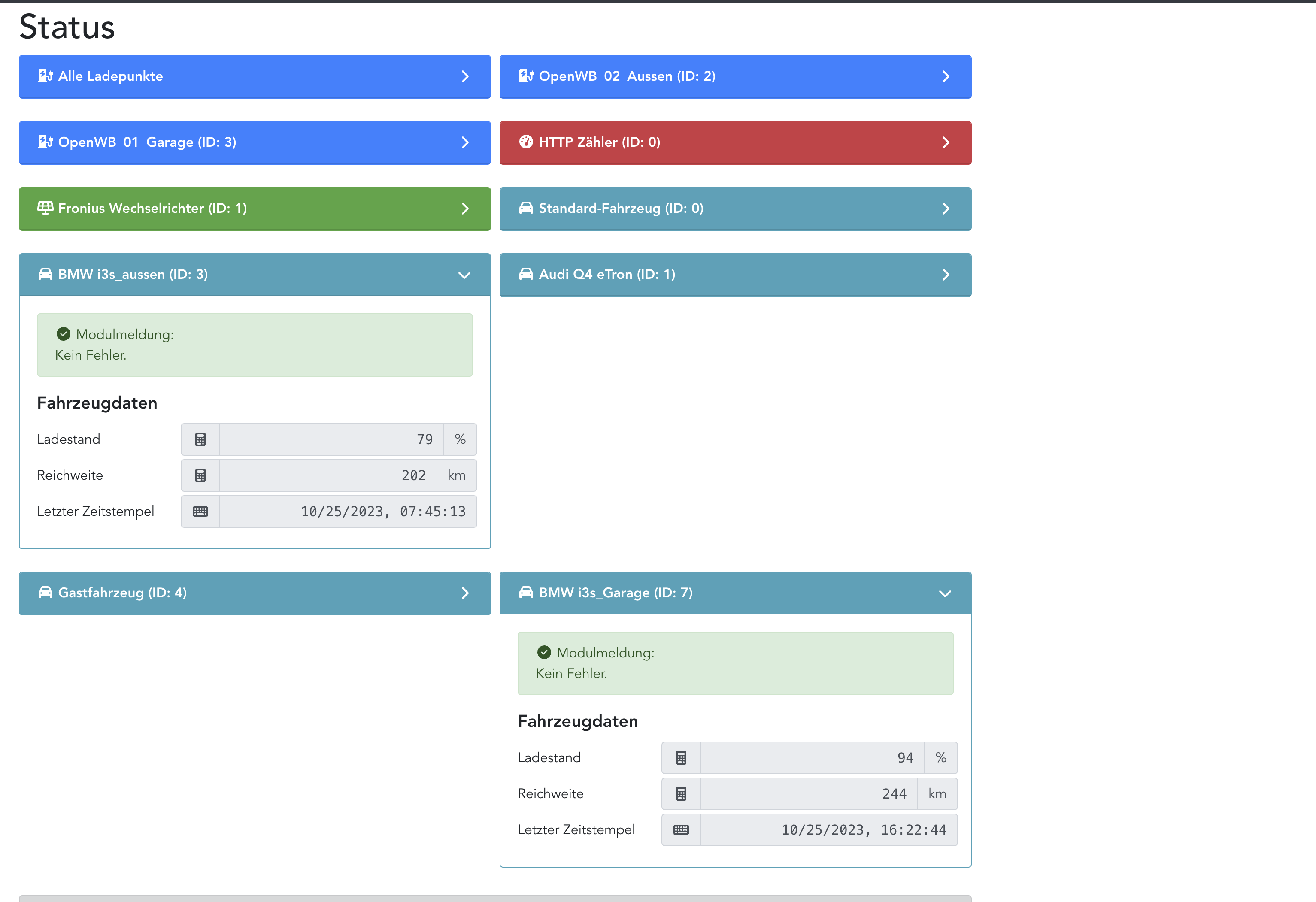Hier der aktuelle Screenshot vom Tronity Dashboard: Hier der Screenshot von der OpenWB Statusanzeige: Und hier das SoC Log: