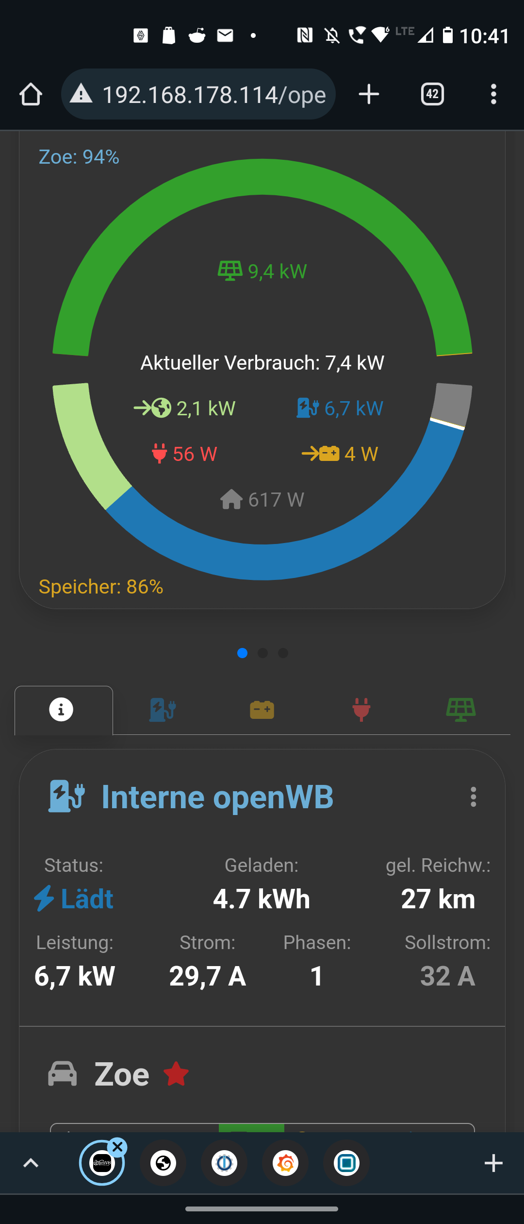 OpenWB s2+, ioBroker Integration, PV10kWp Fronius, Ioniq 5