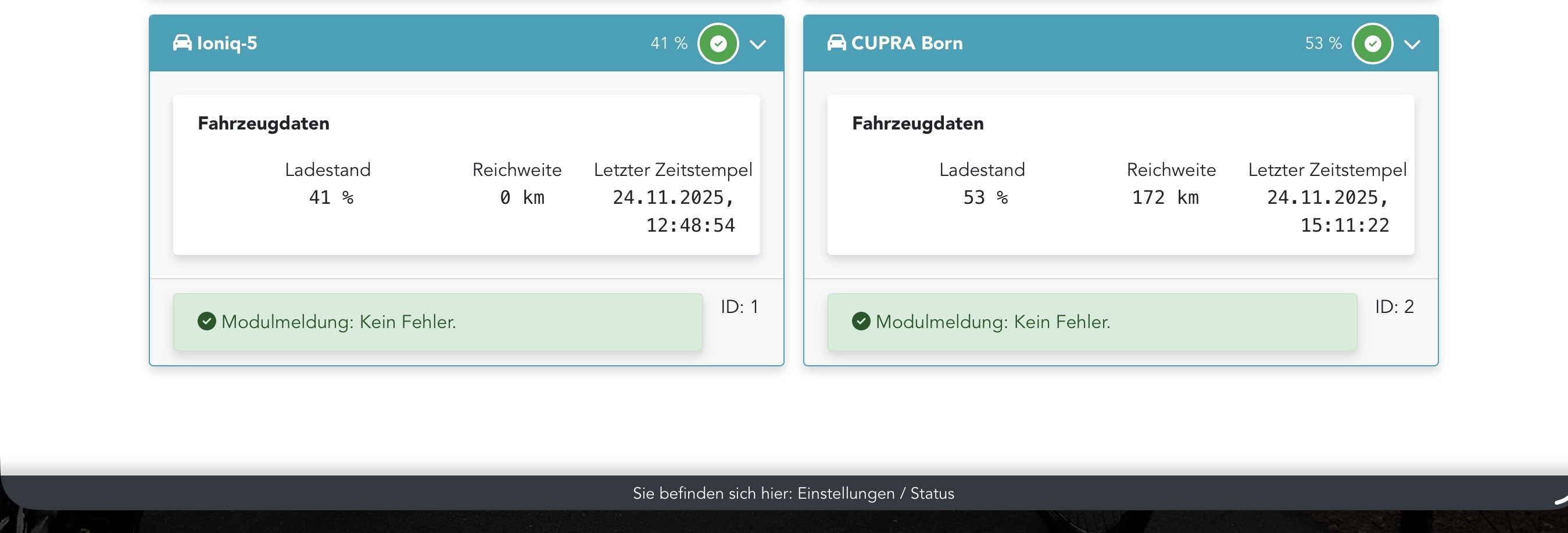 Das kann natürlich sehr gut sein und würde ich am ehesten als Ursache sehen.warbird hat geschrieben: Sa Nov 22, 2025 3:18 pm Vielleicht ein Problem, weil EVCC auf dem separaten Pi und OpenWB selbst den SOC abgefragt hat? Konkurrierende Zugriffe?...Ich lasse es jetzt so....