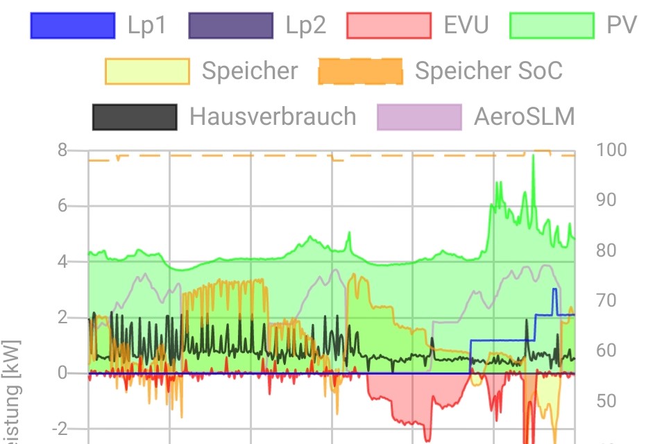 seit letzter Woche läuft unsere IDM Aero SLM 3-11 in Zusammenspiel mit openWB. Einbindung in Smart Home 2.0 hat problemlos geklappt, Überschuss wird übertragen, Wärmepumpe geht in PV-Modus und moduliert. Mal wieder danke an okaegi für die Implementierung!