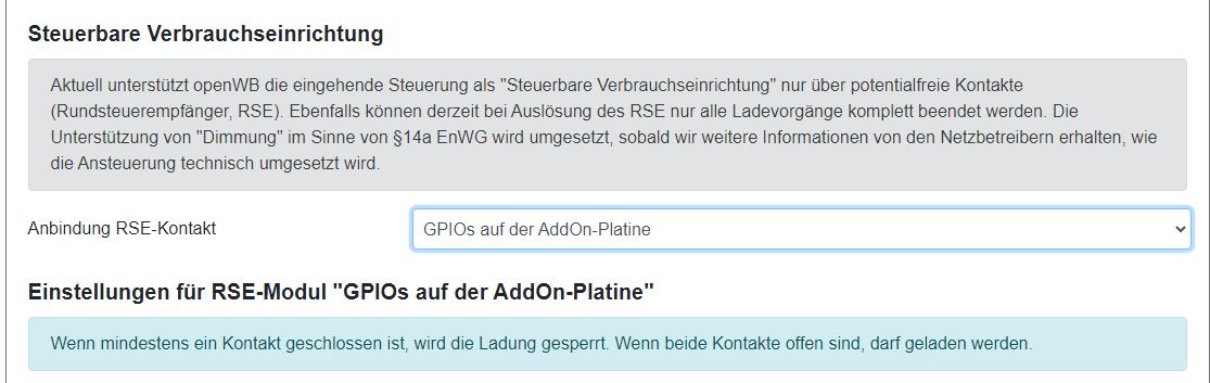 So hat nun jeder die Möglichkeit, ohne dass diese Einstellung vom openWB Support vorgenommen werden muss, die komplette Abschaltung über die RSE-Kontakte zu aktivieren.
