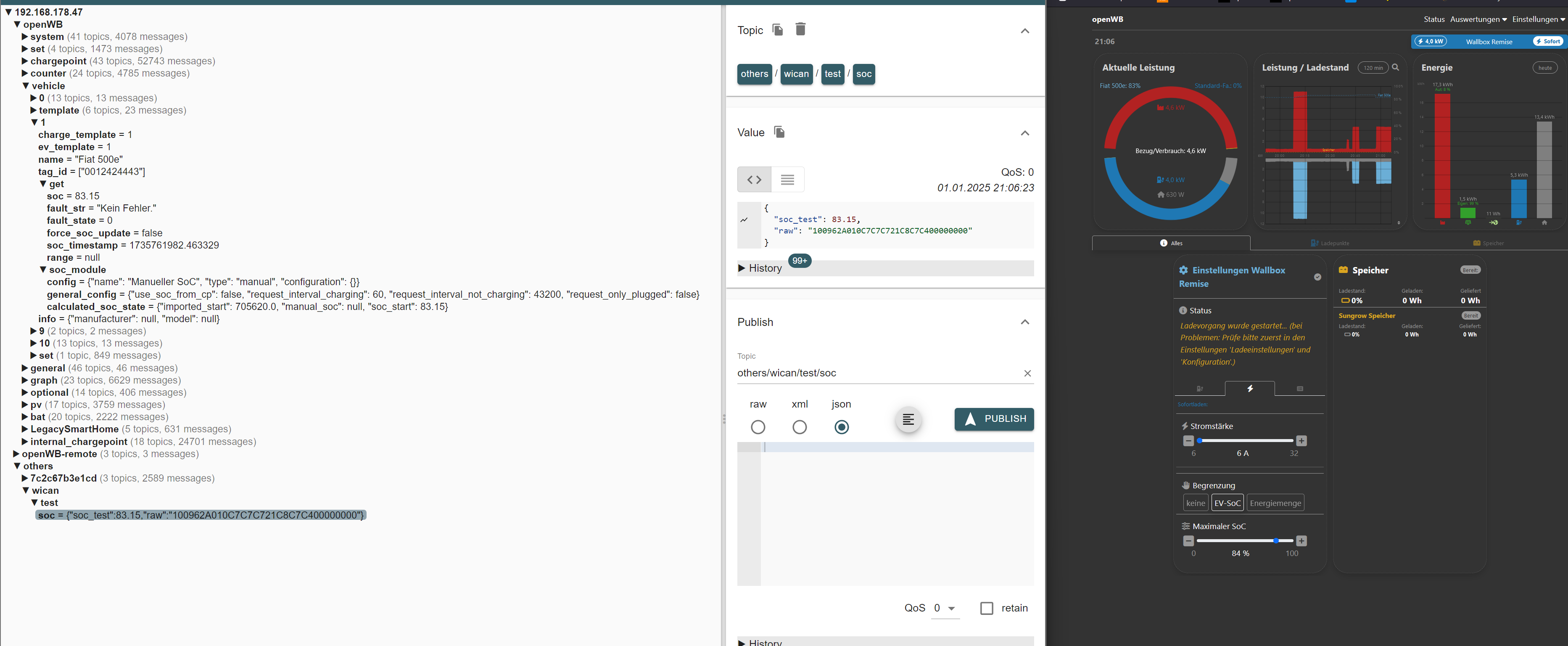 Der manual_soc steht noch auf dem Test Topic, der muss wieder den openWB Pfad ansprechen.