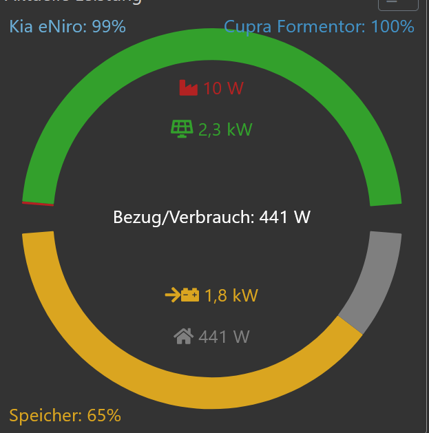 Wenn nix rotes da ist und kein hellgrün (Einspeisung) dann verbauche ich die PV Leistung