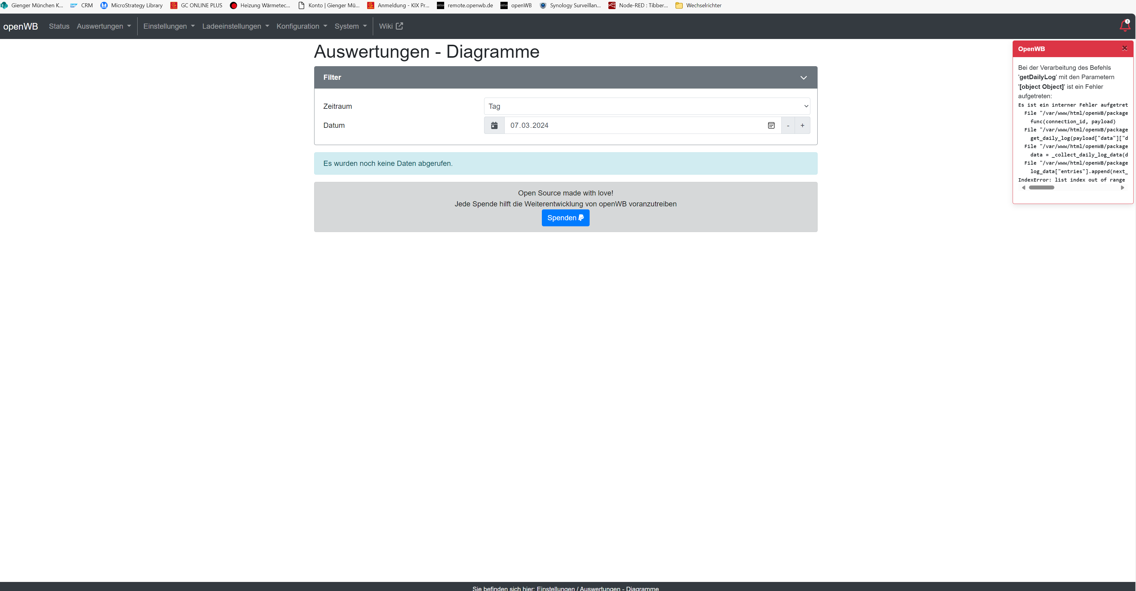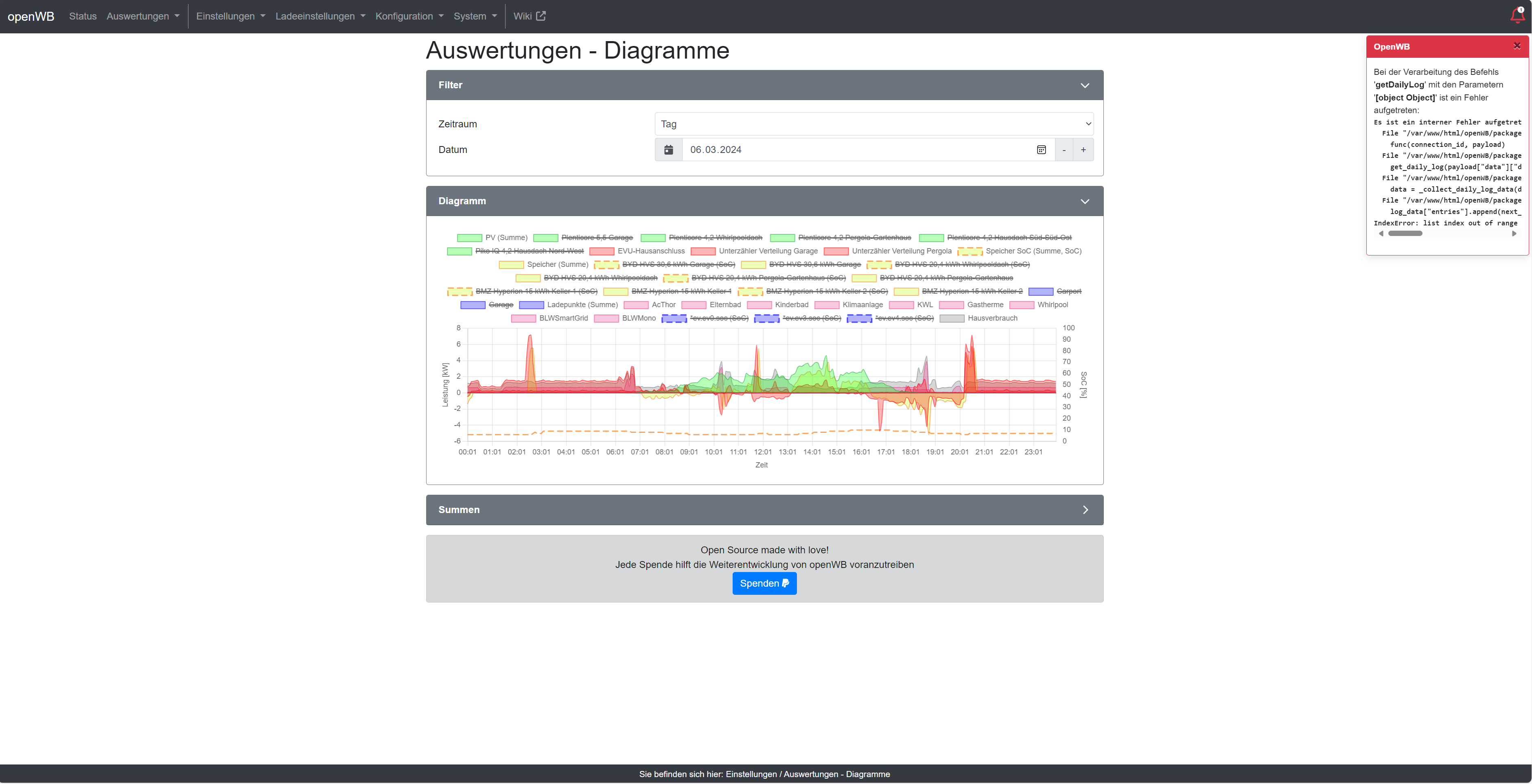 Auch die Auswertung / Diagramme wirft ab dem 06.03.2024 folgenden Fehler aus .