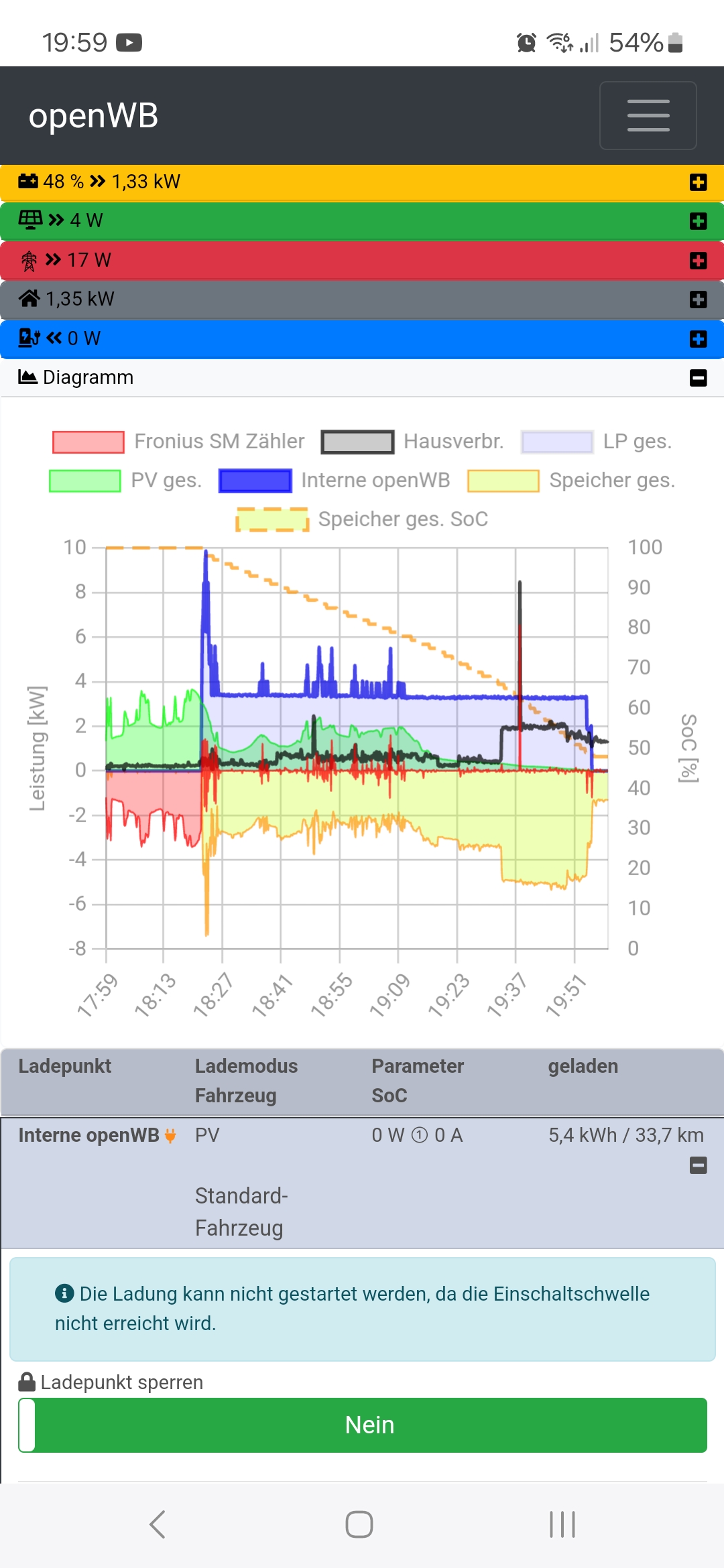 Aber ich bin mir jetzt nicht sicher, ob mir die openWB morgen früh nicht wieder den Akku vollkommen unnötig leersaugt.