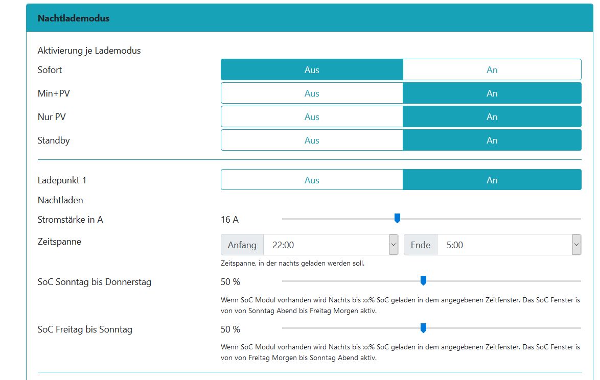 Ok, also würde unmittelbar nach dem Nachtladen der Min + PV wieder starten, wenn er aktiviert ist. Das zu verhindern geht nur über Standby oder Stop ja?