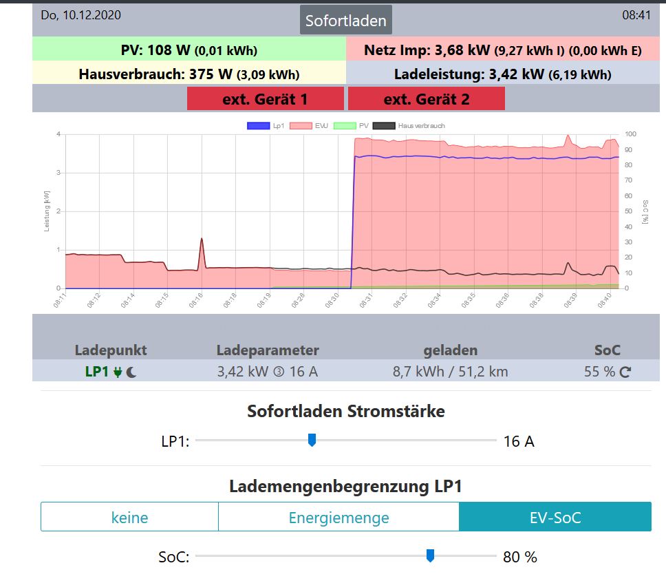 Mittwochabend wollte ich das Nachtladen testen und er zog nur noch maximal 3,4kW. Es war auf jeden Fall der ID3 schuld, denn laut Debug und Support hat die WB 3 Phasen mit 16A freigegeben aber das Auto wollte nicht mehr. Ich werde das heute noch mal testen. Ich werde das Gefühl nicht los, dass es mit dem testen des Ziegels zu tun hat.