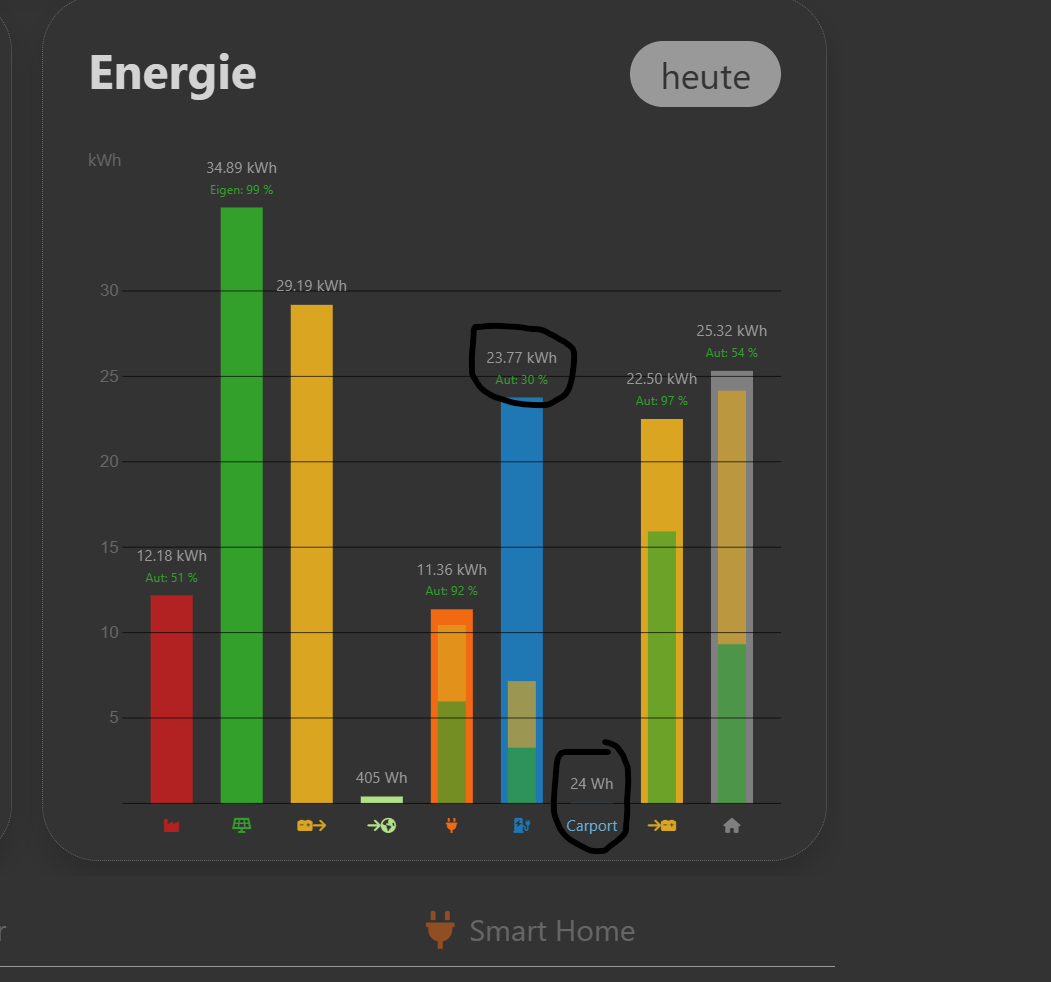 Und die Energiebilanzbalken mit Autarkiewerten stimmen auch noch nicht, komischerweise scheinen sie manchmal aber zu passen. Hab noch keine Systematik rauslesen können wann sie falsch sind... werd mal weiter beobachten.