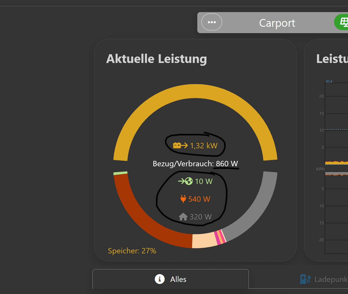 Siehe Bild Es müsste alles auf Carport stehen da nur mit dem Carport Ladepunkt geladen wurde .