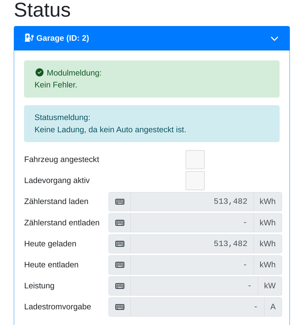 Ich habe noch etwas zum Thema Status, der heutige Ladestand der Wallbox schaut komisch aus: