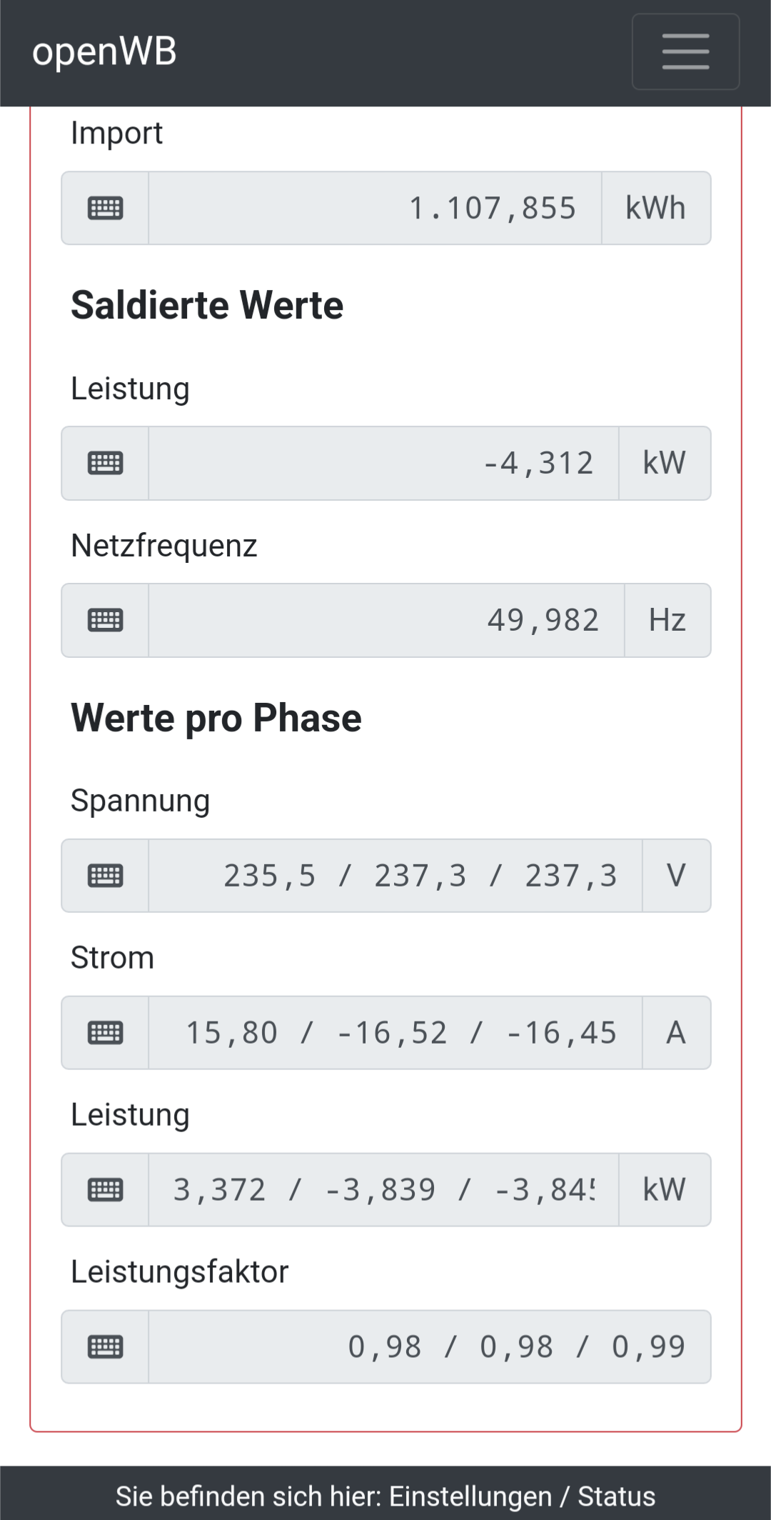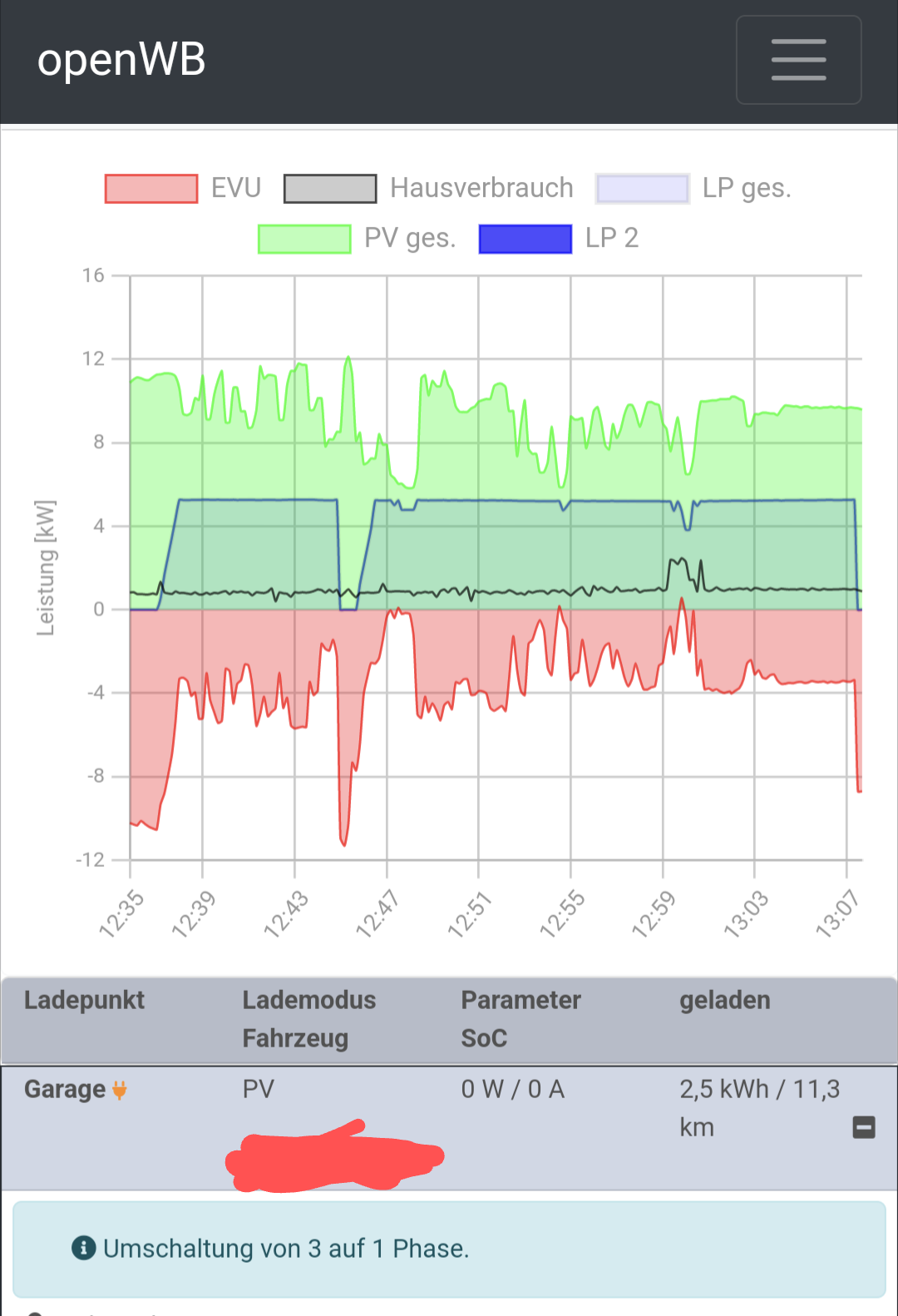 Im Status der openWB war die Vorgabe zu der Zeit auf 3 Phasen (Aktuell stand auf 1 Phase), eine Unterbrechung des Ladevorganges oder neu stecken hat nicht geholfen.