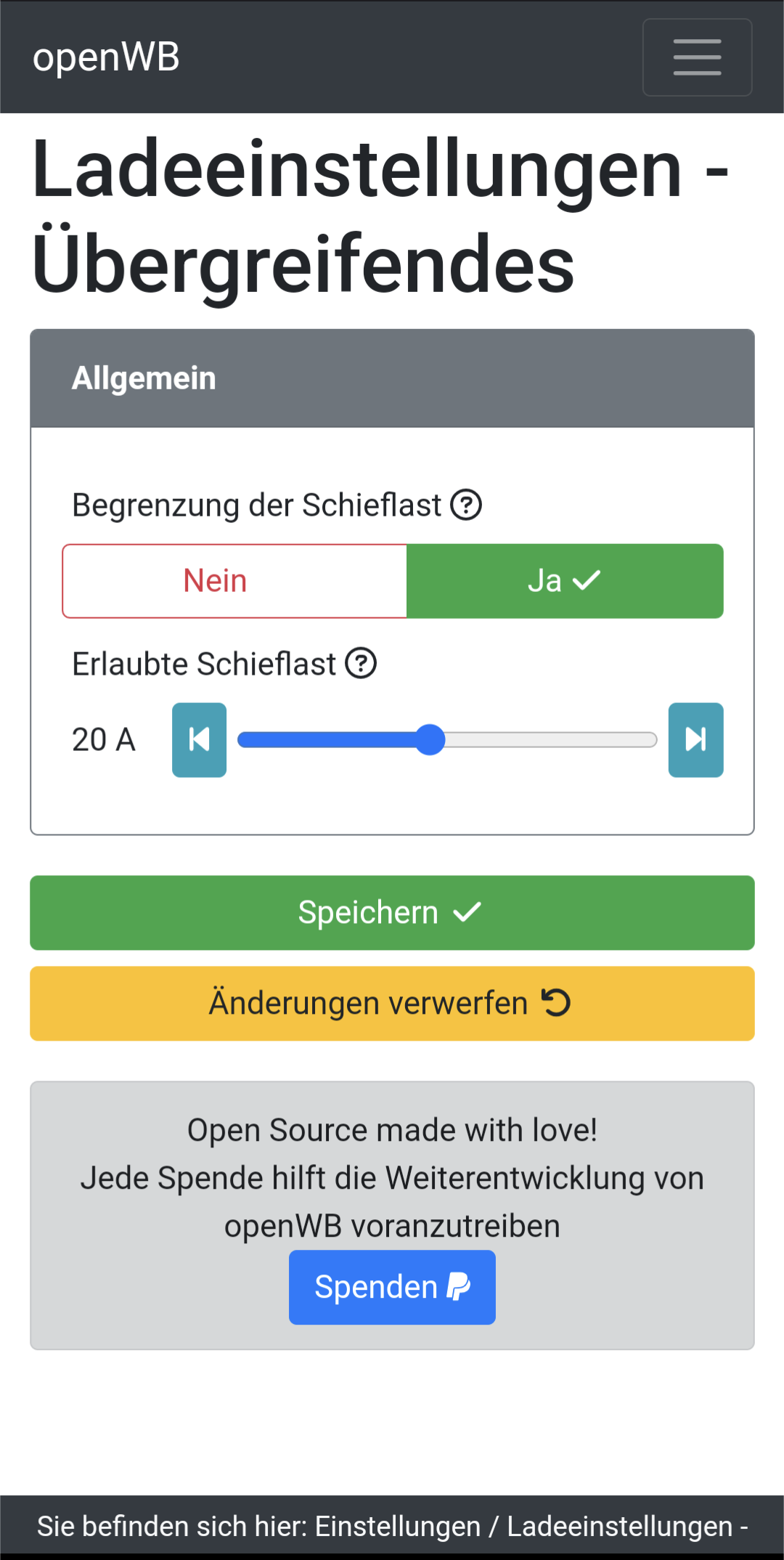 Ich vermute die Ursache in der Grundkonfiguration unter "Ladeeinstellungen -> Zielladen".
