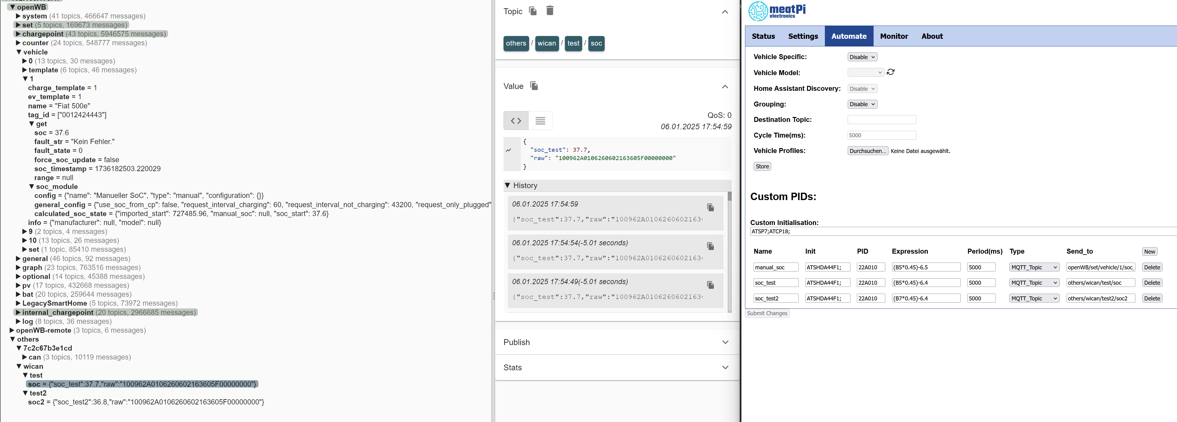 Ich kann keine Änderung der Werte SOC und SOC2 im MQTT Browser unter Wican feststellen.