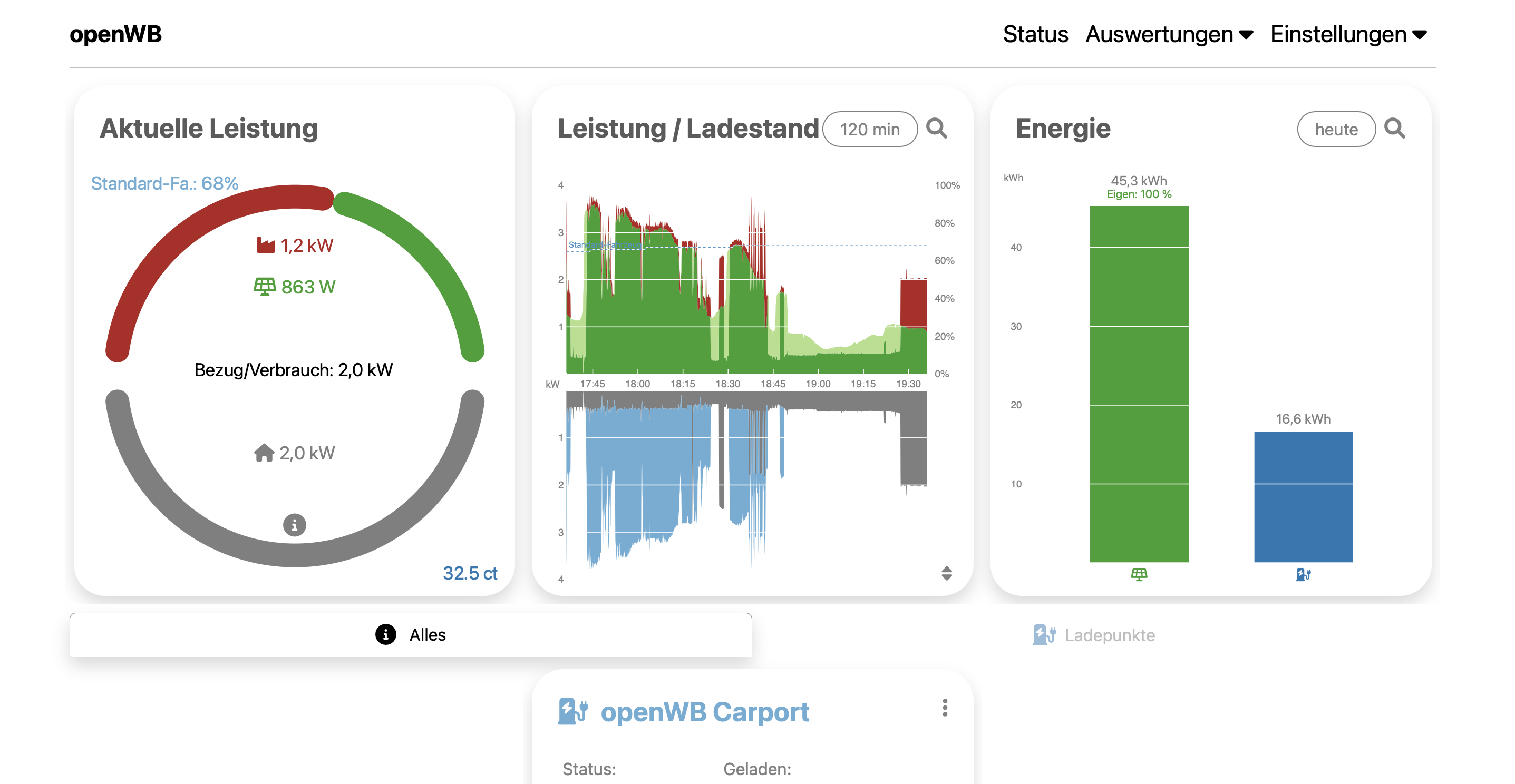 Auf der Startseite wird mir die Ladeleistung auch angezeigt.